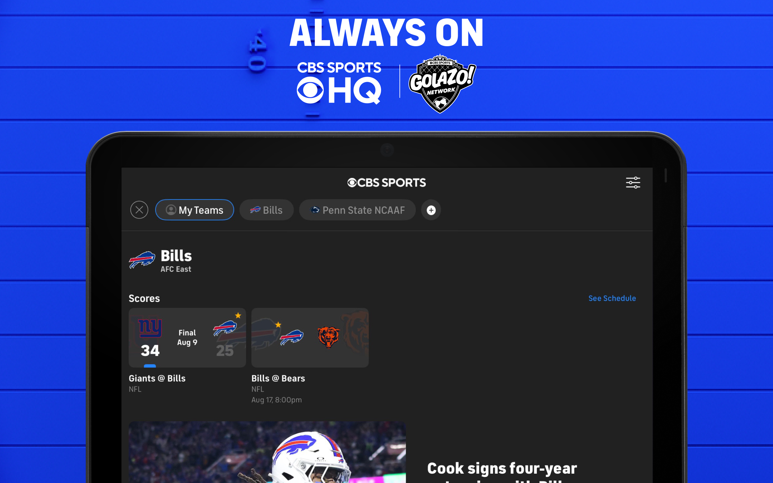 Please note: The CBS Sports app features Nielsen's proprietary measurement software which contributes to market research, like Nielsen's TV Ratings. Please see https://www.nielsen.com/digitalprivacy for more information