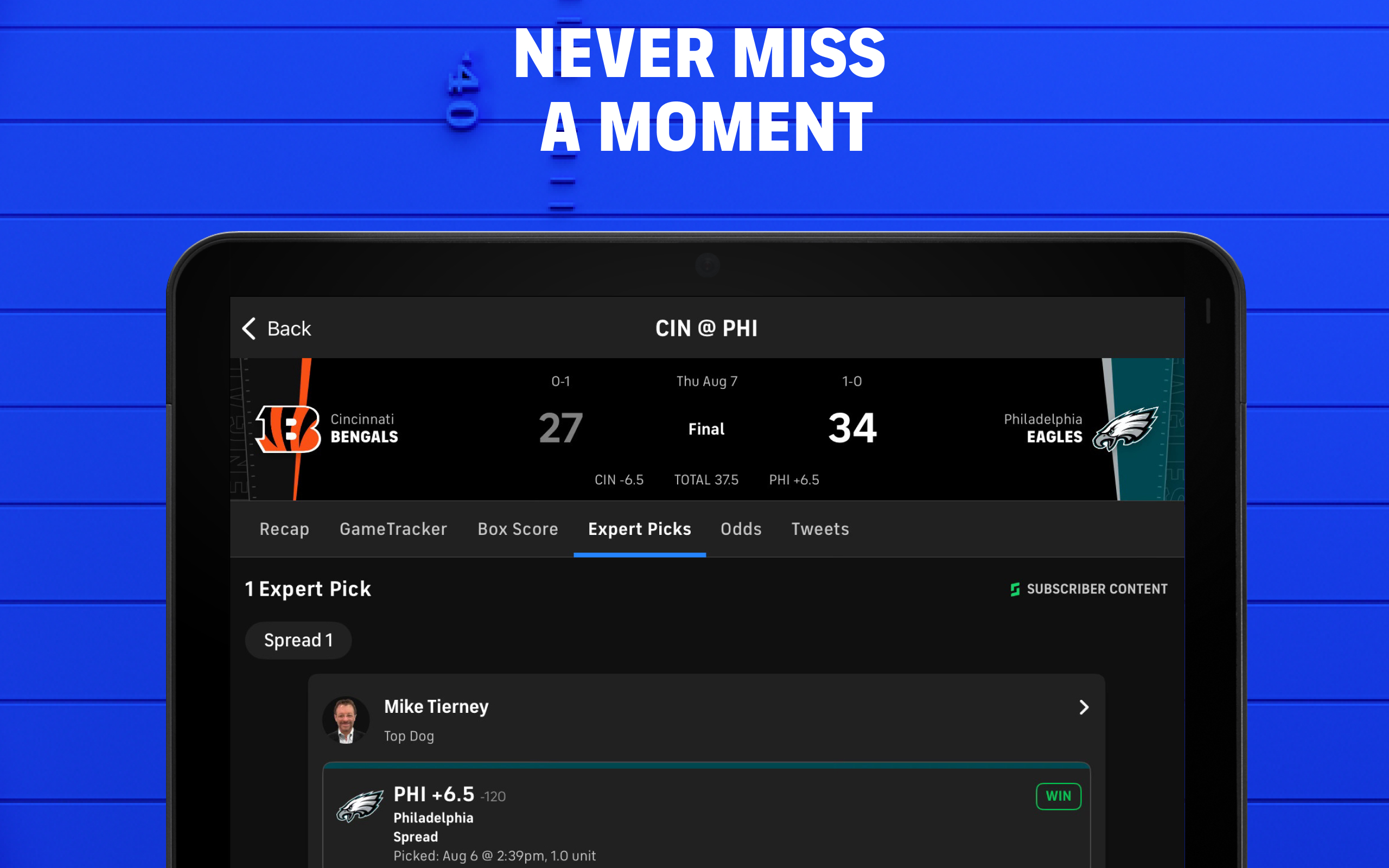 • The fastest news, scores and stats, so you can hear about the latest big plays and events before your friends