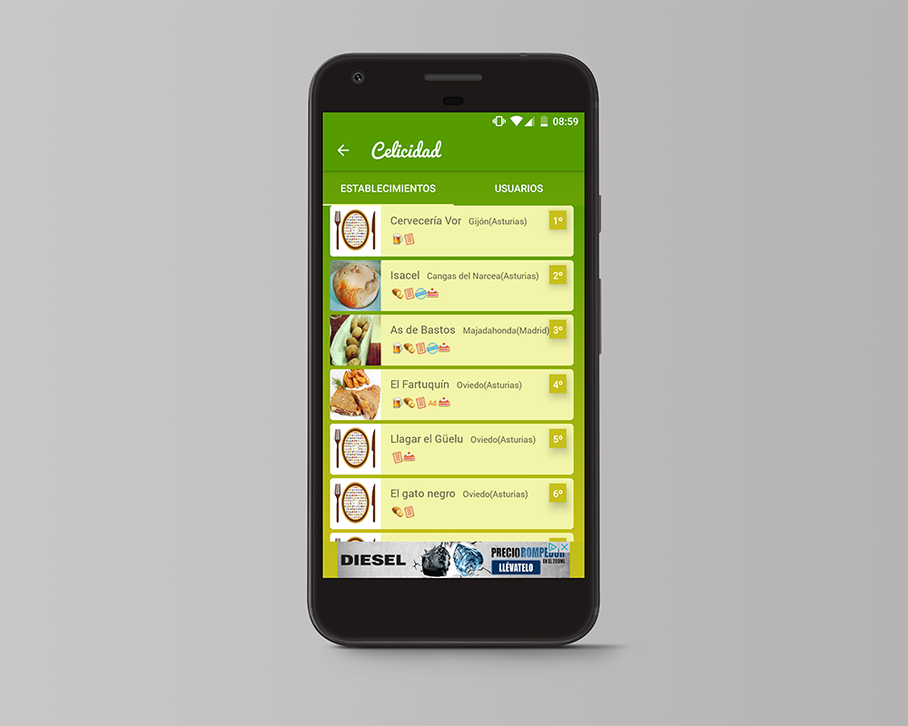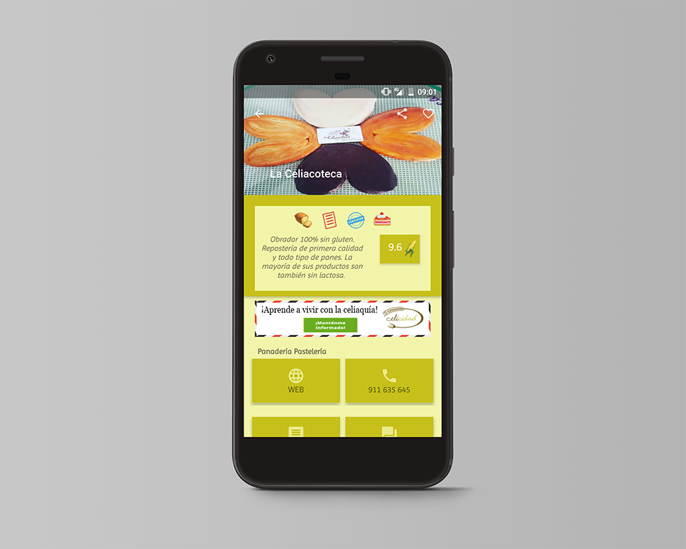 Celicidad App is a free app that lets you locate more than 1,900 restaurants with gluten-free options in Spain. The application includes the location of each of them, their basic information (address, phone, web ...) as well as other interesting specifications for celiac public, as is the type of food, the ranking price, if they have bread if they have beer, gluten-free menu, desserts or have been trained by some of the celiac associations working in Spain.
