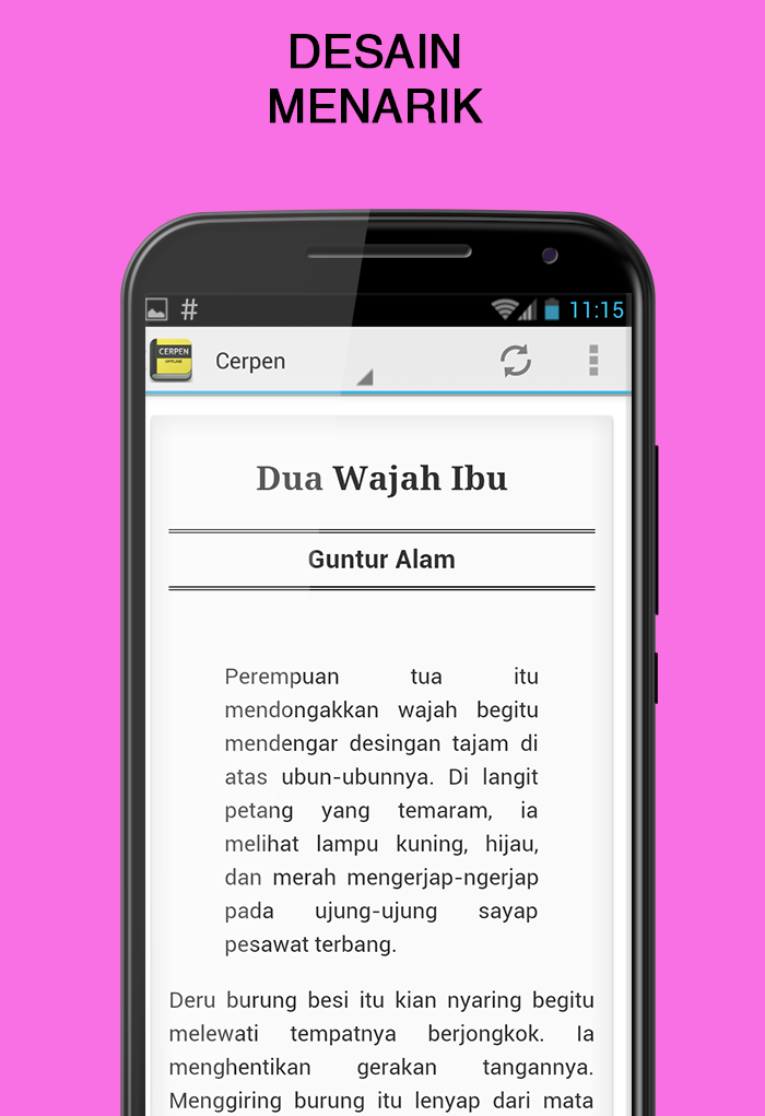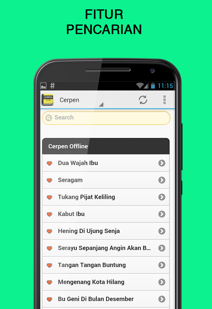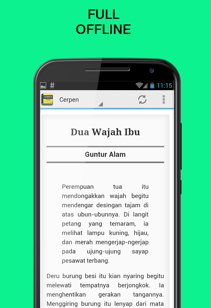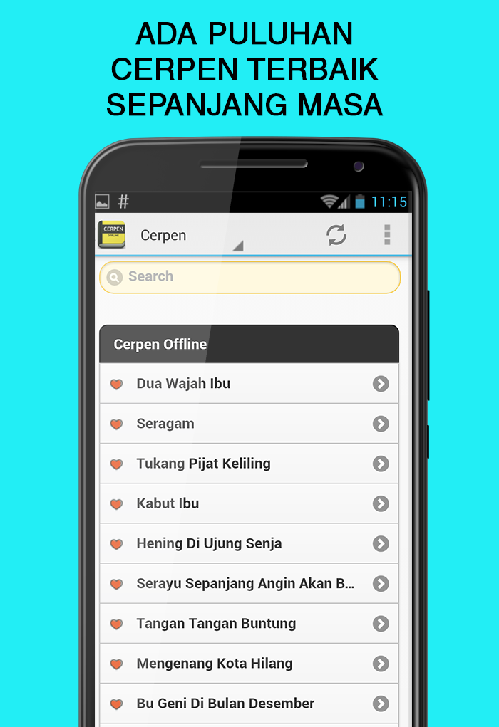 Aplikasi cepen offline ini merupakan aplikasi yang menyediakan berbagai cerita pendek menarik dengan berbagai tema dan alur cerita. Ada cerita yang inspiratif, humor, cinta, dan sebagainya. Di dalamnya ada puluhan cerita pendek menarik yang sayang untuk dilewatkan. Selamat menikmati Disclaimer : All of content in this application is not our trademark. We only get the content from search engine and website. Please let me know if your original content want to remove from our application.