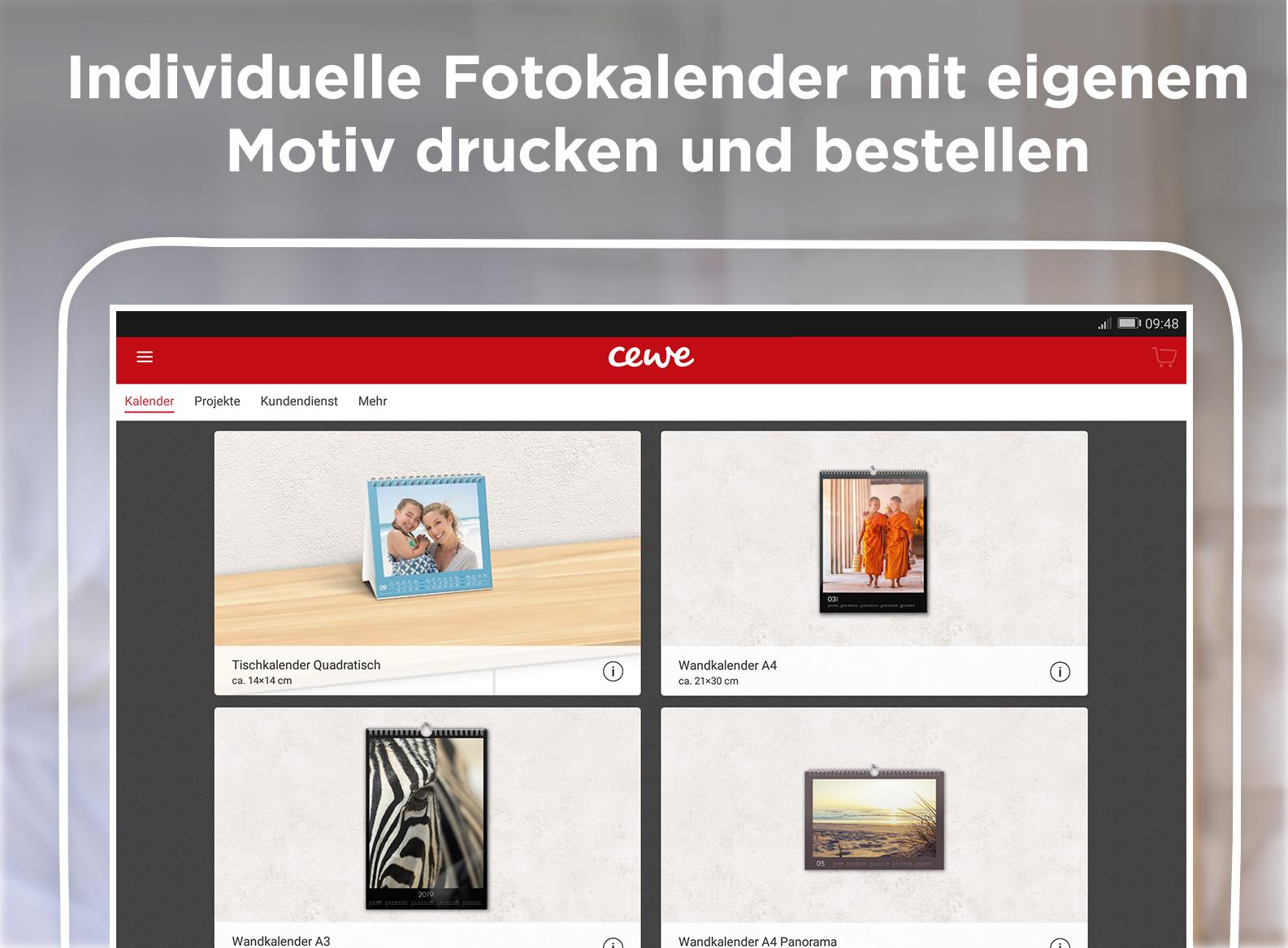 beliebte Fotogeschenke, insbesondere die Fotokalender▶ ÜBER CEWE KALENDERDie Gestaltung mit der CEWE KALENDER App ist intuitiv und bequem auch auf kleinen Displays möglich. Alle Einstellungen von der Wahl des Layouts bis zur Papierqualität sind schnell erledigt. Bei CEWE erhalten Sie jeden Kalender in bester Druckqualität und mit gestochen scharfen Bildern.