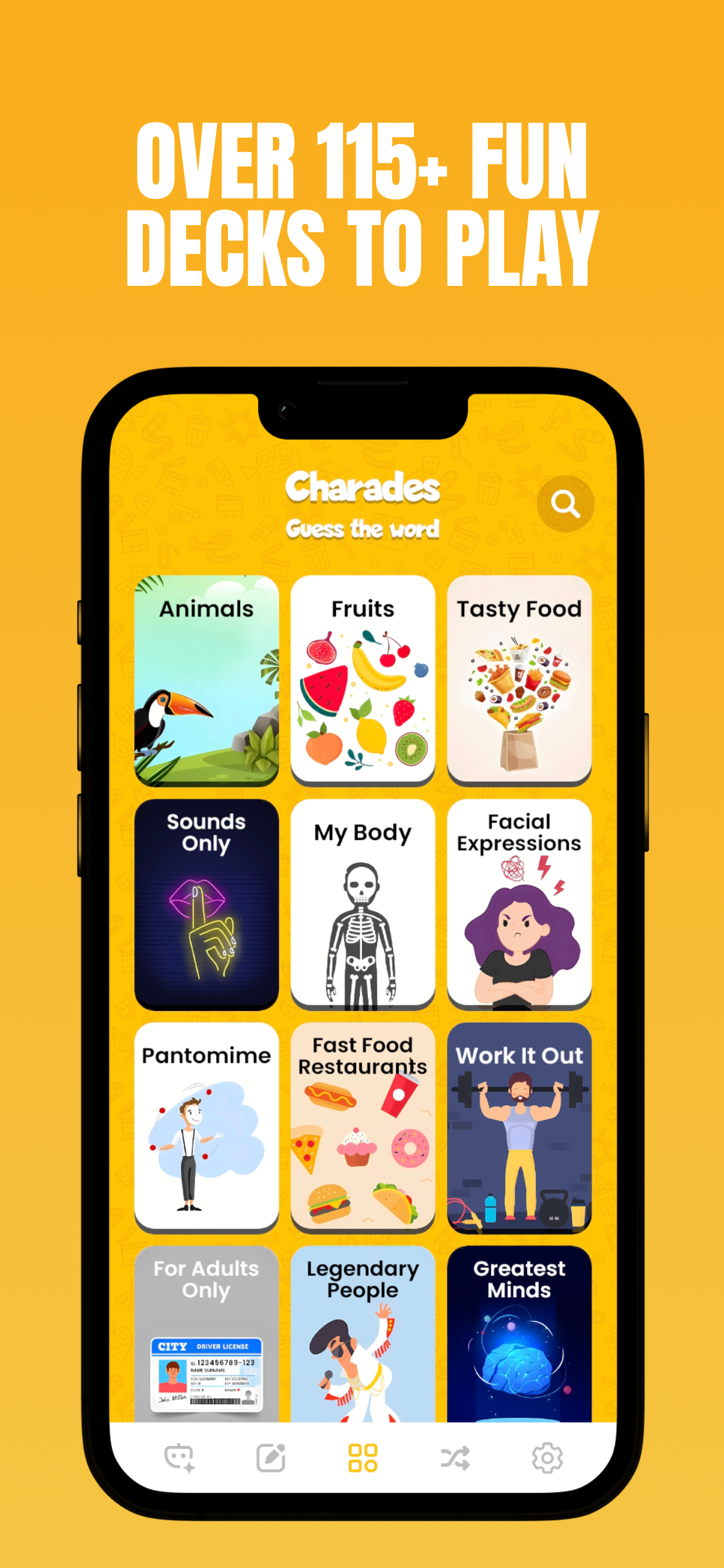 The Charades Free is available in different languages for players around the world! Guess the word on your head from your friend's clues! Try to guess as many words as possible while your friends sing, dance, mime or describe clues! From guessing movies, actors, TV shows to cities and landmarks, this is the perfect solution to spice up a party. Try it now! It's FREE! Will you be able to guess the words on your device from your friend's clues before the 60 second timer runs out? Features: ⭐ Now with AI! Create your categories instantly! ⭐ Completely free to play ⭐ Play with friends or family ⭐ For all ages ⭐ Hundreds of words and levels ⭐ Attractive and colorful design ⭐ Dance, hum, sing, quote or act out clues ⭐ Extremely entertaining categories for all ages ⭐ 60, 90 and 120 second timer ⭐ Hundreds of words and levels ⭐ Works on all devices With over 115+ categories and AI to create your own, guess words from friends' clues for endless laughter and excitement! Decks include: - AI Deck: Create Your Categories in Seconds! - Harry Potter - Game of Thrones - Act It Out - Youtube - Fortnite - Dota - Star Wars - Super Heroes - Actors - Animals - Around the World - Books - Brands - Cars - Cartoons - Celebrities - Characters - Christmas - Colors - Countries of the World - Dinosaurus - Disney - Facial Expressions - Famous Bands - Fast Food Restaurants - Football - Friends - Fruits - Games - Greatest Minds - Halloween - Historical People - Hollywood Movies - I Like To Move It - I Love The 00s - I Love The 70s - I Love The 80s - I Love The 90s - IMDB - Impressions - League of Legends - Megacities - Mixed Categories - Monsters - Movie Directors - Music Celebrities - Mythical Creatures - Natural landmarks - No Talking Only Sounds - Olympian Gods - Oscar Best Pictures - Pantomime - Periodic Table of Elements - Piratas - Pokemon - Politics - Sports Celebrities - Sports - Superstars - Tasty Food - The Bible - Three Letter Animals - Tools - Touch My Body - TV Shows - US Presidents - US State Capitals - US States and so much more......