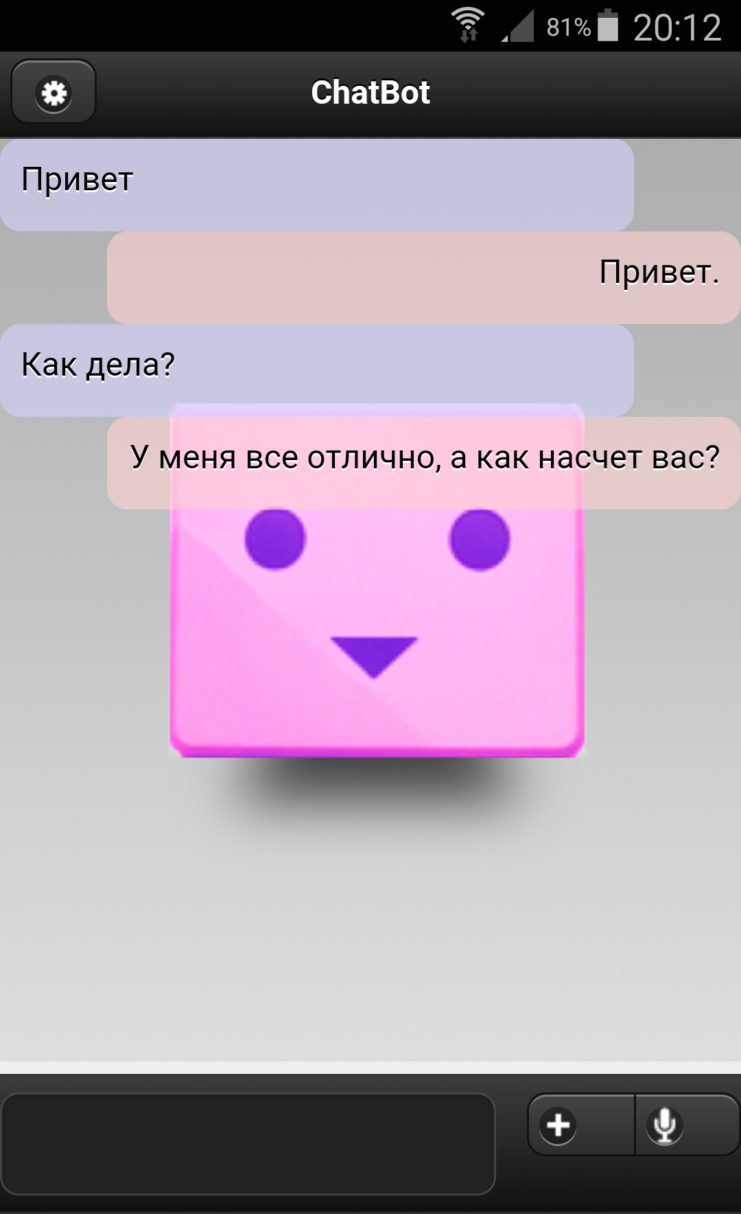 Chatbot teached by other people. Therefore, it is some of the answers may contain offensive or violent language. We tried to clean bot knowledge base of this kind of rude, but downloading this application, you agree that we are not responsible for what bot say you.