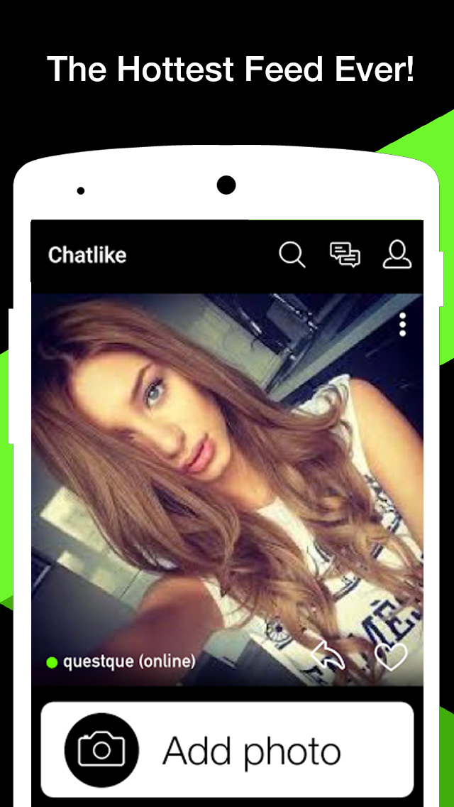 *** The world's hottest photo feed! *** Over 1,000,000 users!!! *** 10,000 users online!! Chatlike is a simple way to share your moments with the world. Share how you are feeling, what you are doing or a fun selfie and let the world chat back. It's fast, fun, and exciting. How it works: - Add photos to Chatlike's one second photo feed - Get instant replies, likes and photo messages - Browse other Chatlike user photos - Do whatever :) It's so addicting you won't be able to stop... Join over 1,000,000 users, Download Chatlike Now!