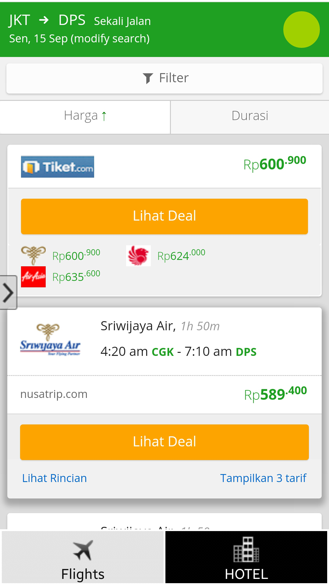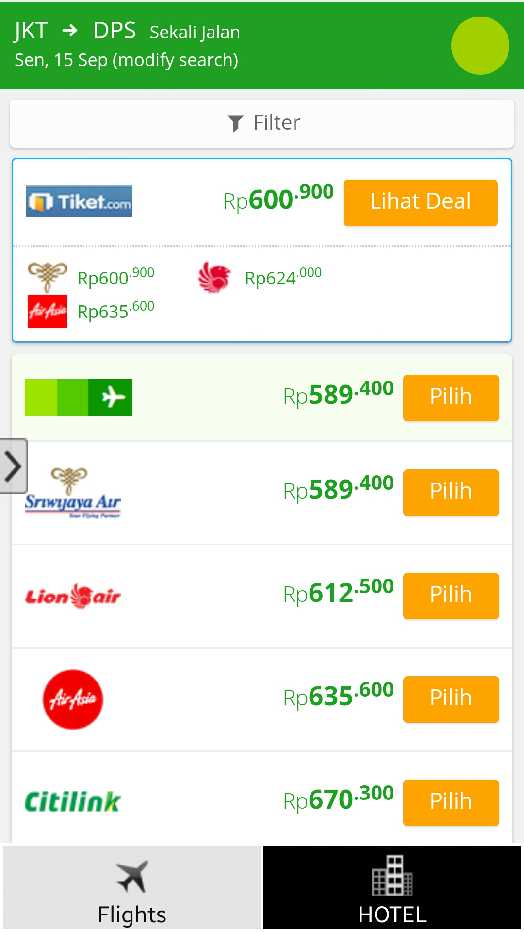 - A lot of flight options in the apps (Lion Air, Sriwijaya Air, Air Asia, Citilink, Batik Air, Wings Air, Water Malindo, Tigerair, Tigerair Mandala, and Express Air)