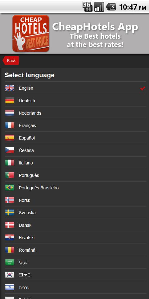 It is available in more than 25 languages (english, french, german, italian, portuguese, turkish, japanese ...) and it is the very best app to find a good hotel in Paris, New York... from the smallest town to the biggest city in the world