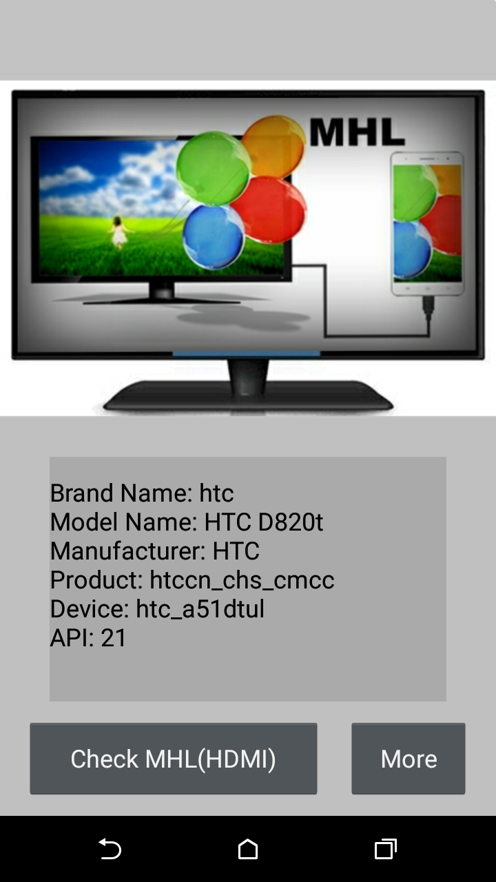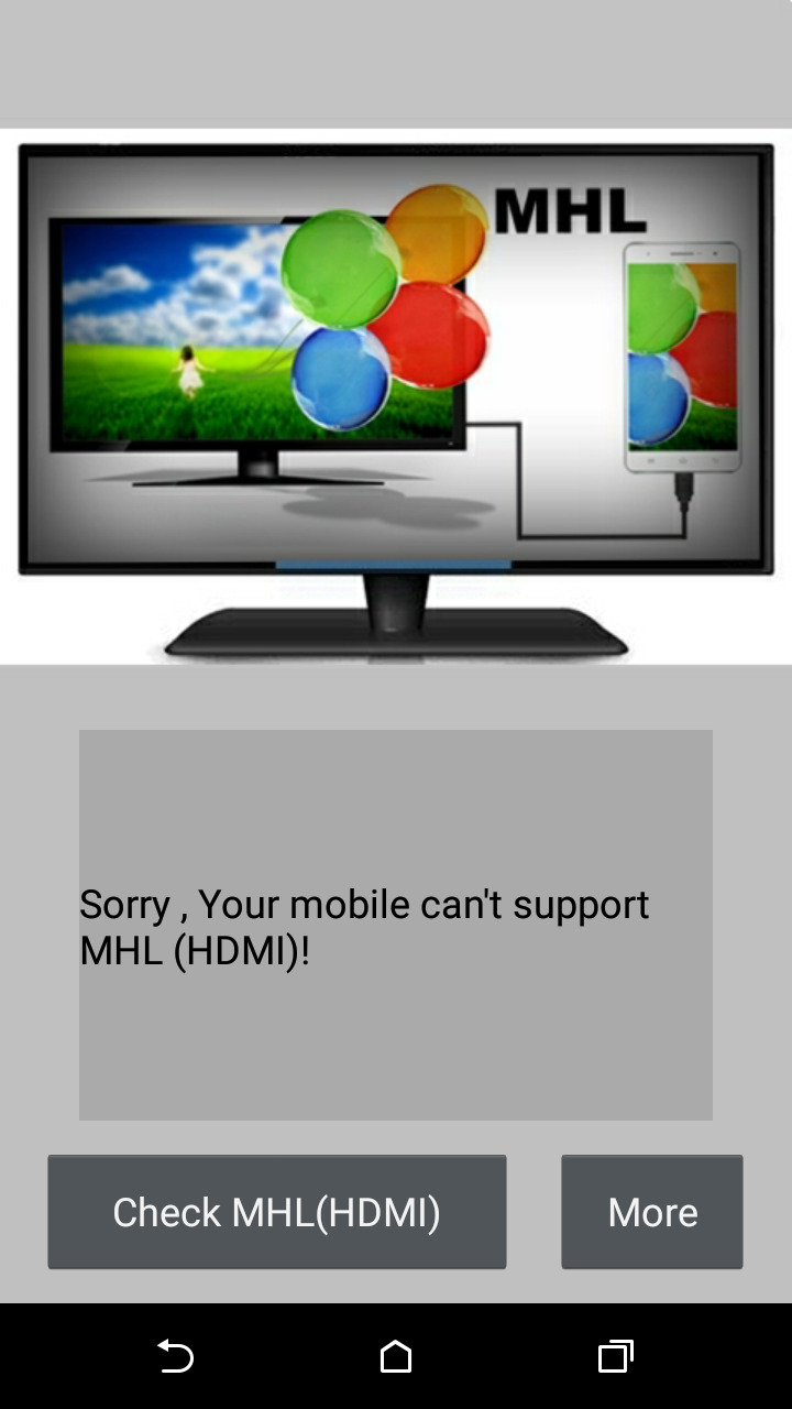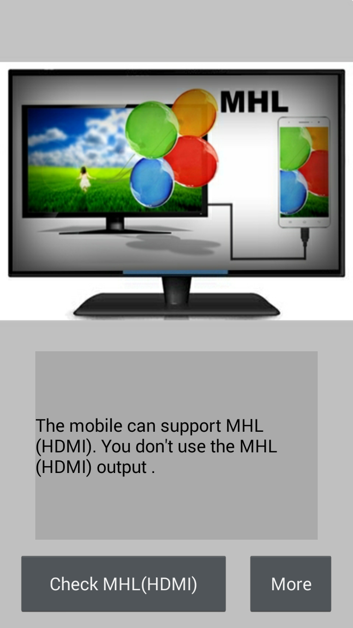 Checker for MHL (HDMI) is a tool to check MHL (HDMI) capability of this mobile.