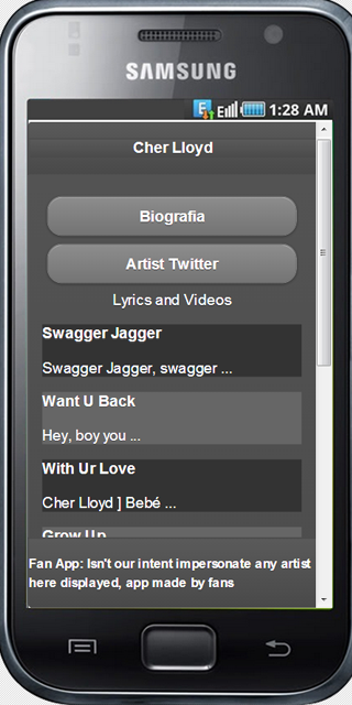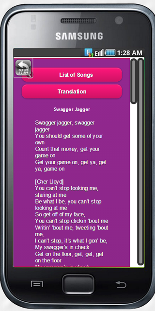 Cher Lloyd lyrics (Package Name: xdk.intel.lmfaesffgt) is developed by AndrewLeeser6 and the latest version of Cher Lloyd lyrics 0.0.1 was updated on February 8, 2015. Cher Lloyd lyrics is in the category of Entertainment. You can check all apps from the developer of Cher Lloyd lyrics. Currently this app is for free. This app can be downloaded on Android 2.3.4+ on APKFab or Google Play. All APK/XAPK files on APKFab.com are original and 100% safe with fast download.