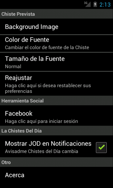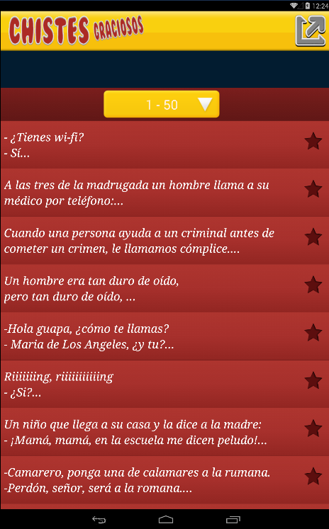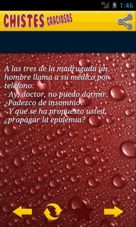 En esta aplicación se garantiza encontrar chistes divertidos para compartir con sus amigos del Facebook o enviralos a través de un mensaje de texto.