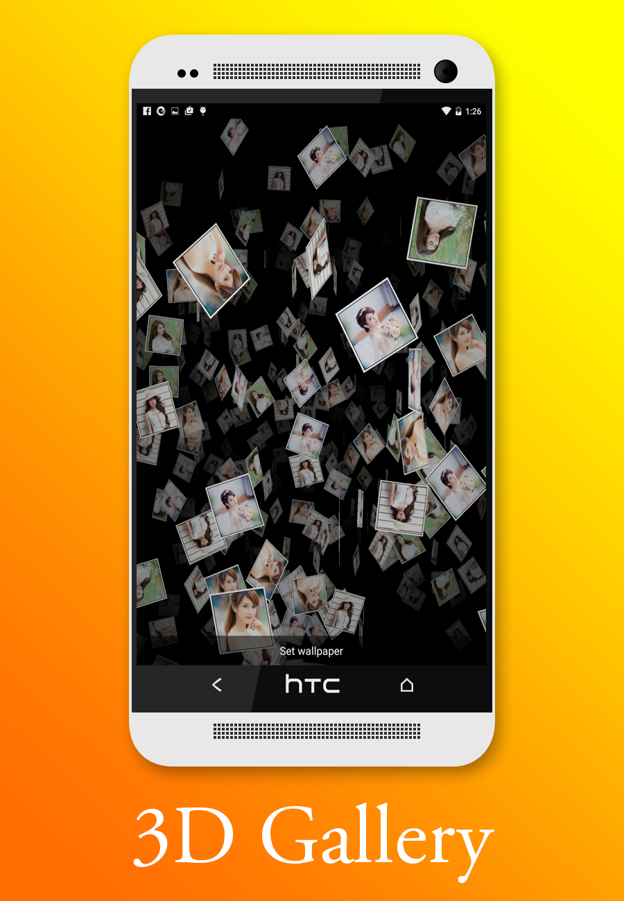 Choose Photo Live Wallpaper 3D beautiful slideshow photo with your photo gallery. Easy and simple to create awesome live wallpaper with smoothly and beautiful animation from your photo. Simple way step by step to have nice live wallpaper: -Open app -Choose 4 photos from your gallery -Choose "Choose Photo Live Wallpaper 3D" from list live wallpaper -Done