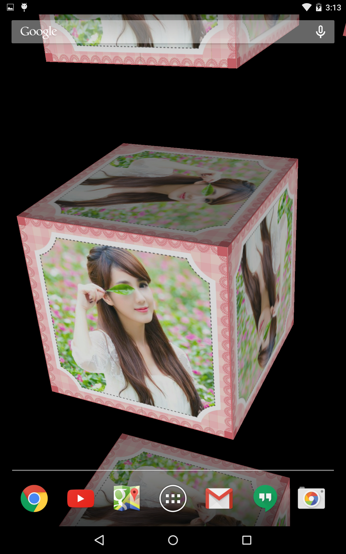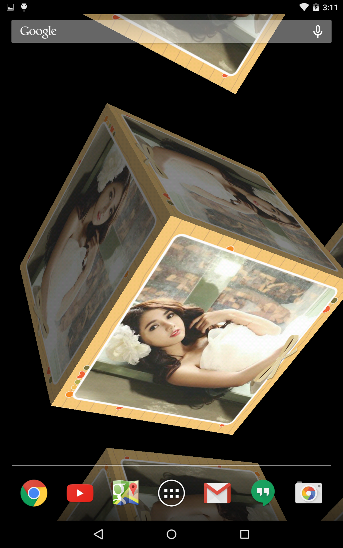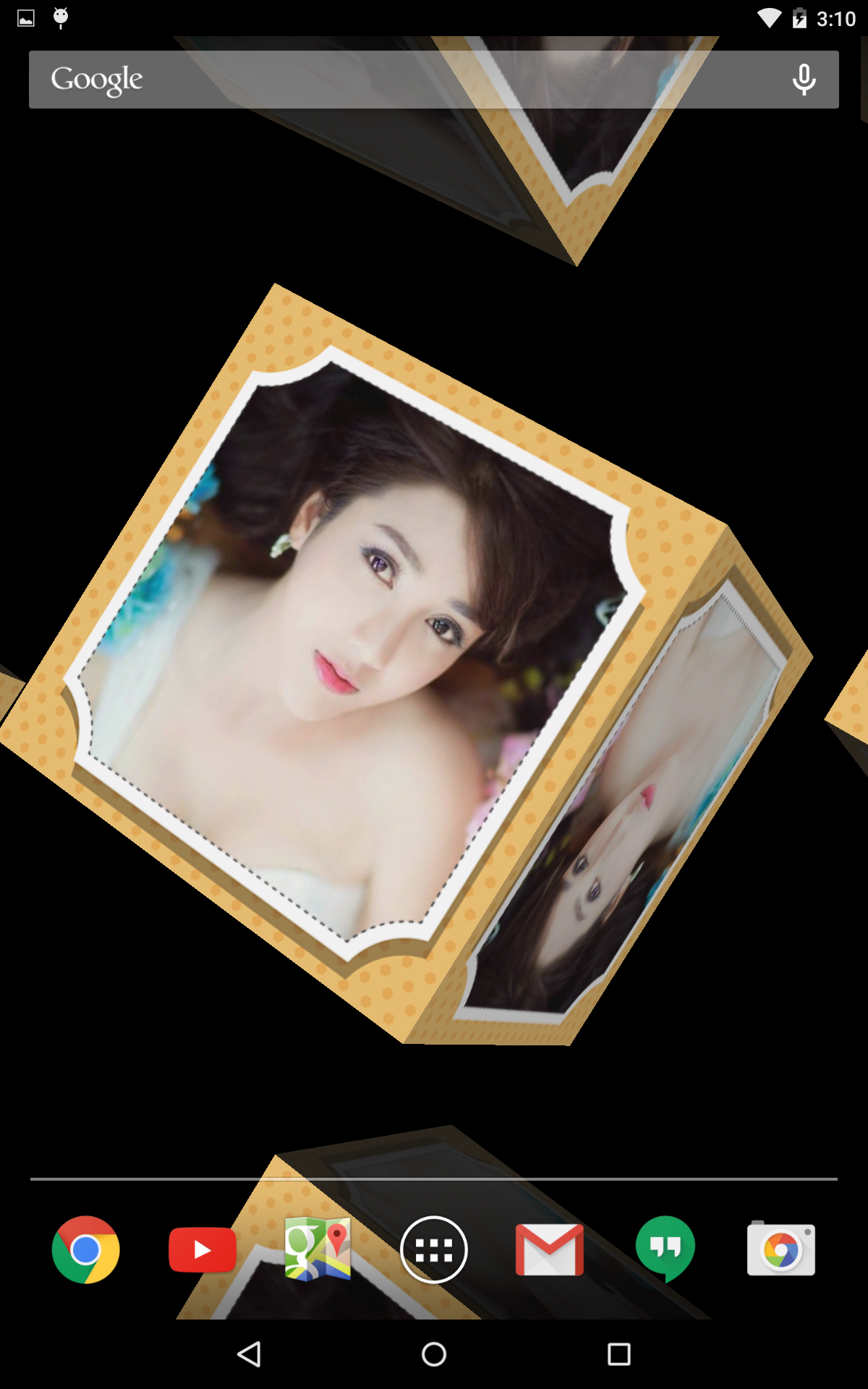 Choose Photo Live Wallpaper 3D with 9 cube faces from your gallery. Awesome 3D. 1. Choose photo from your gallery 2. Choose your favorite frame from app's gallery frame 3.Set live wallpaper You can choose one of 45 beautiful frames to insert to you photo and have awesome 3D live wallpaper