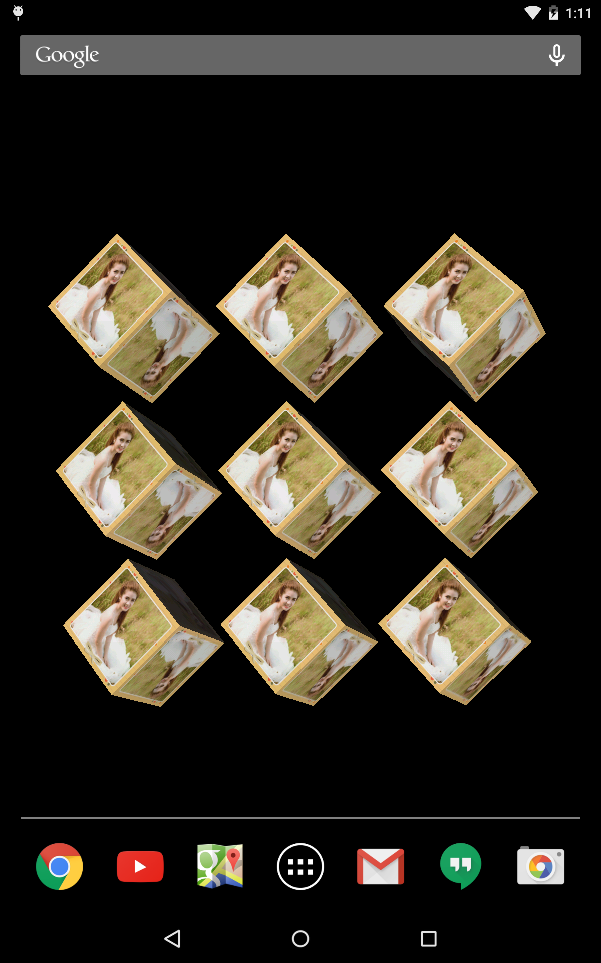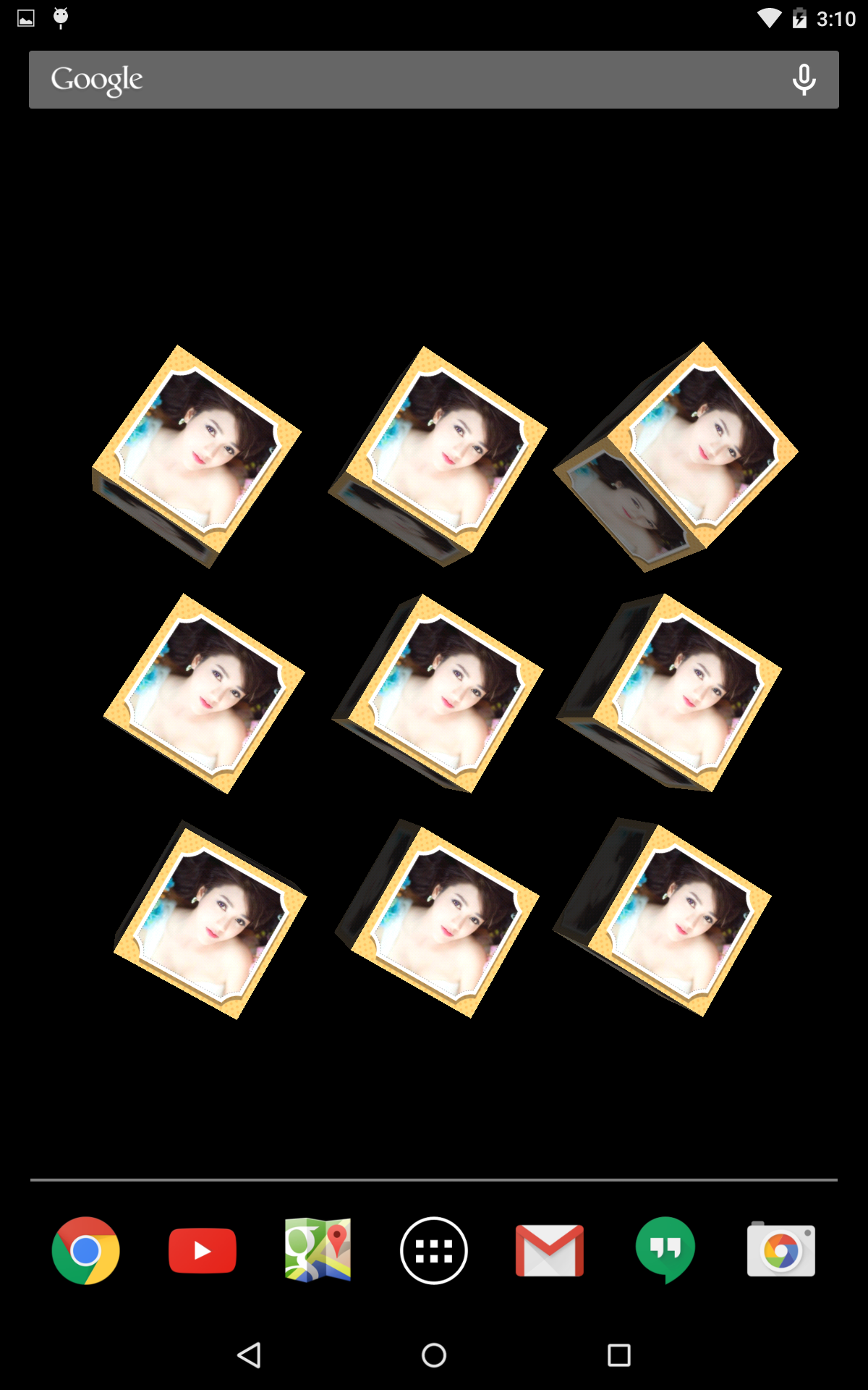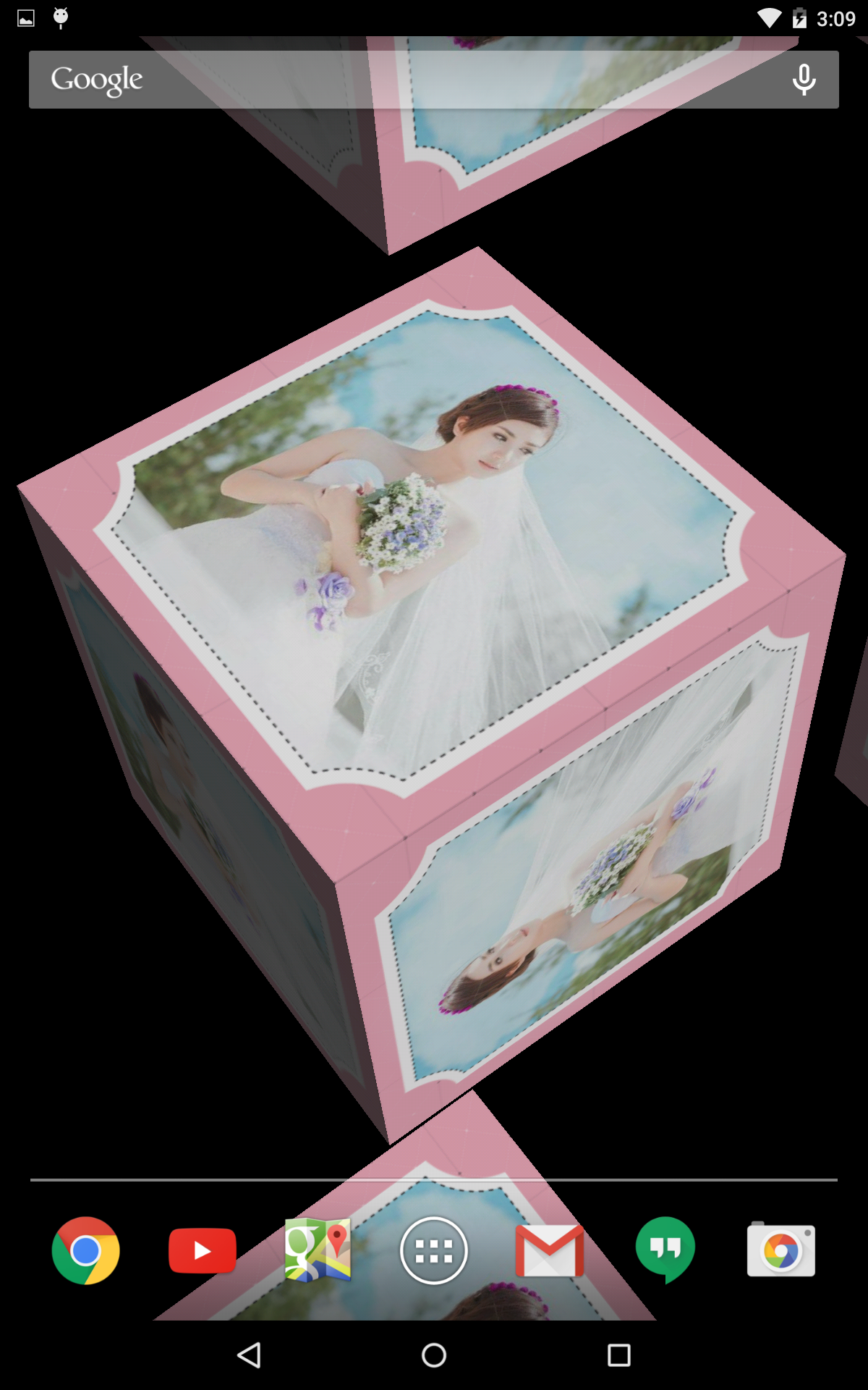 Choose Photo Live Wallpaper 3D with 9 cube faces from your gallery. Awesome 3D. 1. Choose photo from your gallery 2. Choose your favorite frame from app's gallery frame 3.Set live wallpaper You can choose one of 45 beautiful frames to insert to you photo and have awesome 3D live wallpaper