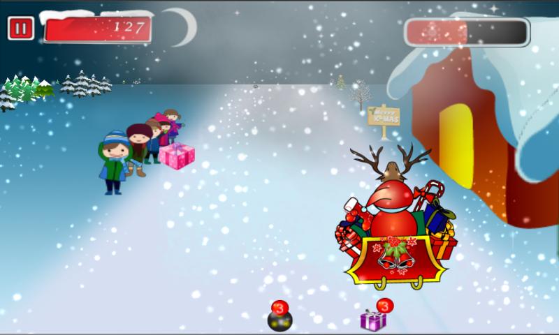 It's Chistmas Eve! Santa is late and he hasn't delivered any presents! Help him deliver gifts to eager children in the neighborhood! An addictive Christmas game for the holiday season! The game includes: *An addictive gameplay for all ages *Submit your score and compete with friends online *Earn coins for delivering gifts and SHOP with them *Various powers to Santa to make the children happy For any queries or suggestions please contact [email protected] If you like the game, please rate it with 5 stars.