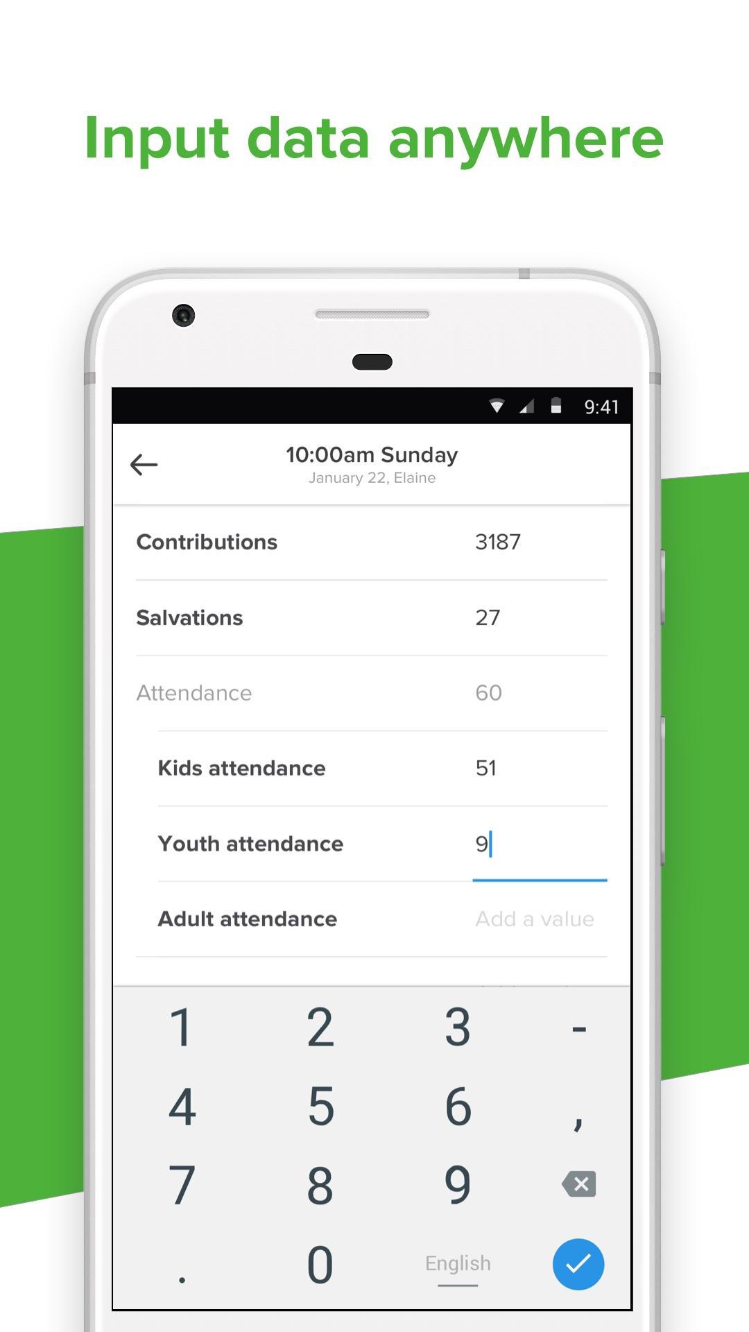 App Features: • Access your church statistics from anywhere, any time at the touch of a button. • Drill down to individual service times or categories for specific metrics. • Input your ministry numbers in real time—upload info like parking lot tallies, kids ministry numbers, salvations, and main auditorium attendance in real time during your services. • Stay organized when your entire ministry inputs data in the same place. • Keep team members informed with instant, account-wide stats. • Easily toggle between multiple service times or campuses. • Integrates seamlessly with your existing Church Metrics account. About Church Metrics: Better information helps you make better decisions. Church Metrics is an easy-to-use web tool and app that helps you track church statistics like attendance, salvations, baptisms, giving, and more. Customize unlimited additional categories to track anything that matters to you, from cars in the parking lot to volunteers. Your dashboard displays the real-time information, and charts and reports help you make data-driven decisions. • Track any metric you choose—if you can count it, you can track it! • Adjust your fully-customizable dashboard to display the numbers that matters to you. • See a visual representation of trends and patterns with interactive charts. • Track metrics for a single-site church or multiple campuses. • Get automatic email reports. • Transform metrics into sleek, easy-to-understand reports. • Keep pastors, board members, or other key leaders in the loop with reliable metrics. • Import and export reports using Excel. • Support multiple users, roles, and permissions with varying levels of access. • Switch between accounts easily. • Integrate with external apps. • Create private, invitation-only Church Metrics Groups to manage and review data for an entire denomination, church plant group, network of churches, or other association if needed. If you already use Church Metrics, download the app and log in to your dashboard. If you don’t yet have a Church Metrics account, download the app and get started! Connect with Church Metrics: Follow us on Twitter: https://twitter.com/churchmetrics Use Church Metrics online: https://churchmetrics.com Get Church Metrics support: https://support.churchmetrics.com/
