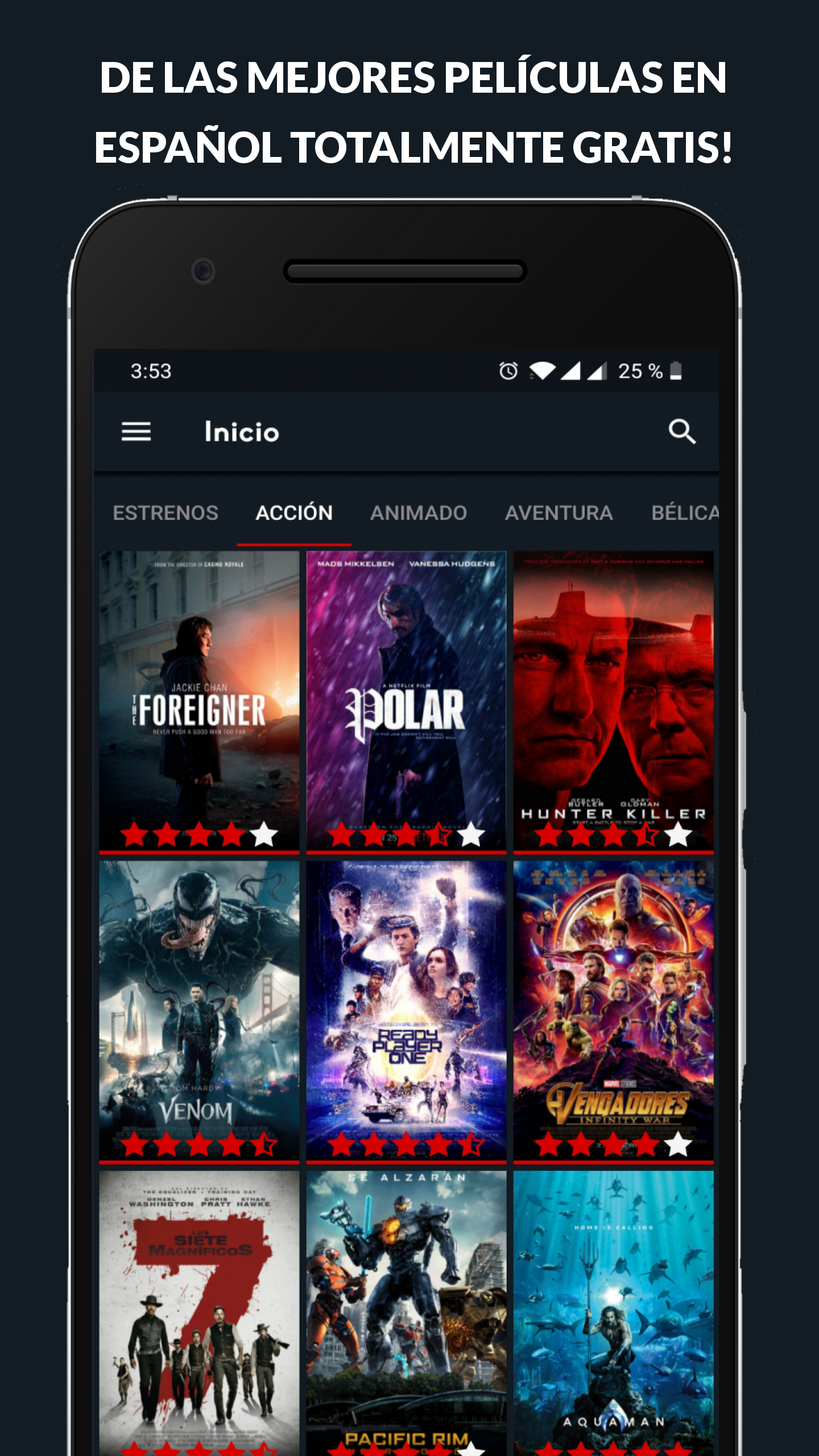 Solo formatos Full HD 1080p, HD 720p, HQ 480p, etc... Ve y disfruta de tus películas favoritas en español y totalmente gratis mientras estas sentado o junto a tus familiares queridos! Características: --> Películas en high-definition (HD) --> Ver Películas en español totalmente gratis --> Descarga el contenido para verlo mas tarde --> Transmite las películas a tu TV utilizando chromecast --> Comparte las películas con tus familiares --> Navega por categorías y elije la que te guste --> Busca cualquier película con el buscador interno de la CinePlay! --> Fácil de usar --> La única App de películas en español que necesitas Categorías: --> Acción --> Animadas --> Aventuras --> Dramas --> Terror --> Comedia --> Ciencia Ficción --> Familia --> Suspenso --> Y muchas otras más Solicita tu acceso y Únete a CinePlay! Disclaimer: CinePlay! rechaza totalmente cualquier intento de violación de derechos de autor, así como también protege y respalda los derechos de los propietarios y cualquier otra legalidad a los que se vean inmersos. Esta app brinda fácil acceso a la información y contenido de los vídeos mediante el uso de “Inserción de Vídeos” que claramente no se encuentra tipificado como una infracción a los derechos de autor, esto según sentencias del Séptimo Tribunal de Apelaciones. CinePlay! no sube ni almacena en su app o servidor, cualquier archivo de película, vídeos, archivo multimedia en ninguno de sus tipos (avi, mov, flv, mpg, mpeg, divx, mp3, mp4, mkv, torrent, iPod, PSP) o cualquier otro tipo de material que se encuentre protegidos por derechos de autor. DALE PLAY A TU CINE!