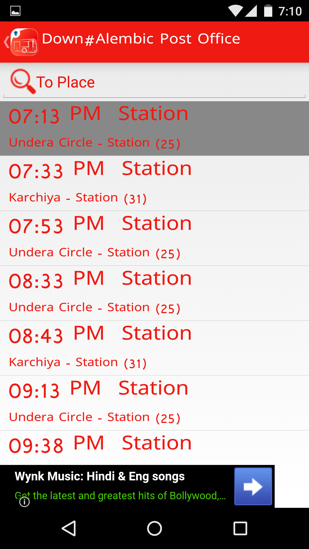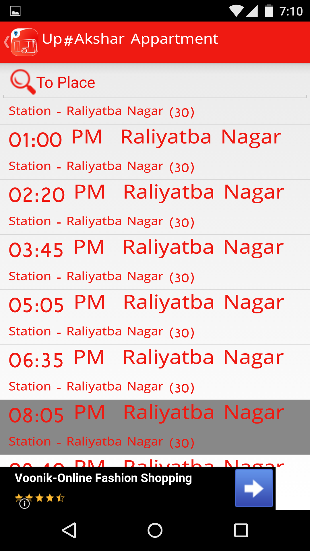 5. Vadodara VINAYAK Bus timetable.