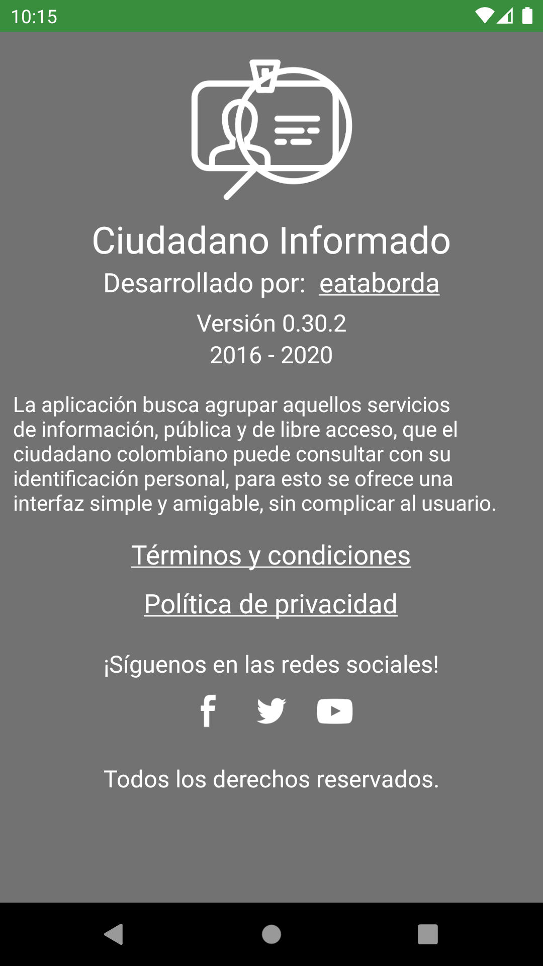 Thank you for using Informed Citizen !, this application makes it easier for Colombian citizens to access public and freely accessible information, using their personal identification for this.