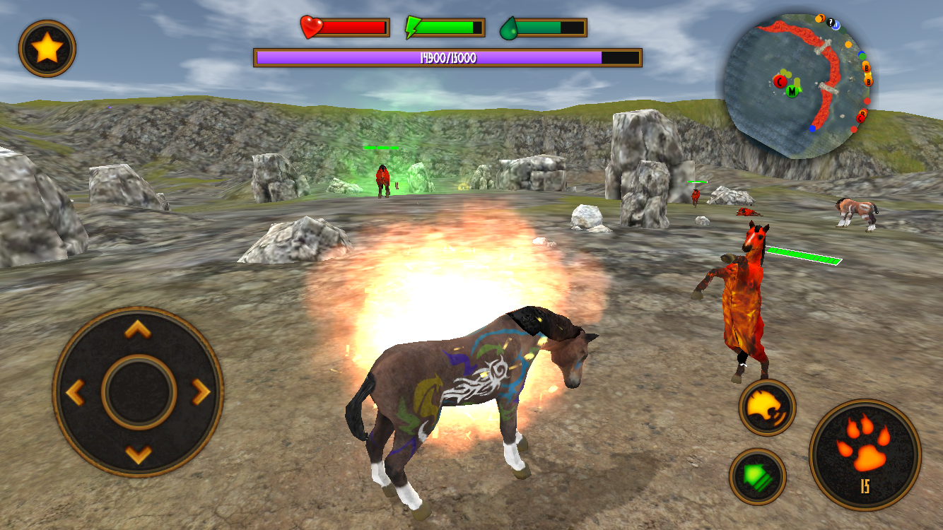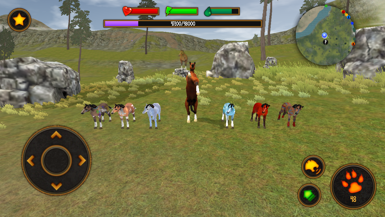 ★★★★ ♞ Clan of Stallions is here! ♞ ★★★★ Do you love horses? Do you feel like controlling a wild horse as he gallops his way around a huge map, looking for family members, defeating bosses, enemy clans, and super giant animals? You begin as a young colt, ready to race and chase down your enemies, get stronger, and ultimately defeat all the giant super bosses. Your young colt is the final remaining member of the infamous Ayanda Clan. ♞ Your objectives include: finding all the members of your new family, marking your territory, defeating all the bosses, enemy clans, and finally the super bosses. ***Special Feature Customize your Horse! Many color combinations to choose from. Thanks for supporting Wildfoot games! We love our players!! We are trying our best to being you the most action packed animal simulators on the app stores. Clan of Stallions is the most recent installment of our adventure animal simulator games. The most action packed stallion simulator game on the app store. Loaded with all your favorite forest animals including: Fox, Deer, Wolf, Horse, Pony, Bear, and Giant Eagle. Enter this forest world as a young horse, help him find his family, grow into a huge giant and powerful Stallion, and dominate the forest. Your group members will be your ultimate guardians. You must learn to use your own clan in order to win the game. **Customize your Color by pressing the Edit button on the 'Me' page** **8 Different Color and Style Options to Choose From** Other enemies include : Eagle, Fawn, Fox, Deer, Bear, Duck, and Wolf . Be fast and race around the huge map and hunt down your enemies. Strike them before they get you. This game has elements of Wild Animal Survival, Role Playing, and Action Adventure games. Magic includes : Electricity ⌁, Fire Boulder, Super Heal, and Invincibility Shield. Top App Features: ♞ Fast paced and action packed animal simulator ♞ Find all 6 of your family members ♞ Locate all the magic books 📕 ♞ Hail your clan members when you are near your enemies ♞ Real wild animal sound effects and dynamic weather effects ☂ ♞ Open World Survival game ♞ Huge 3D Forest Map Map Features Include: High Grass Hidden Caves Waterfalls and Lava Flow Destructible Logs Movable tree trunks Trees, Rivers, and much more!! How to Play: 1. Mark your territory 2. Find all 6 family members 3. Find all the 4 magic spell books 4. Beat all 6 Bosses 5. Defeat all 4 enemy Stallion Clans 6. Defeat all 6 Super bosses Do you enjoy playing this game? We would love it if you let us know what you think. We tried hard to respond to all comments and listen to your suggestions. At Wildfoot, we love 3D animal simulators and our goal is to set the standard of quality for animal sims. Please come check us out on Facebook: https://www.facebook.com/wildfootgames for updates. Remember that friendship is magic. Find your guardians and create your own legend! Thanks for playing our games!!♞