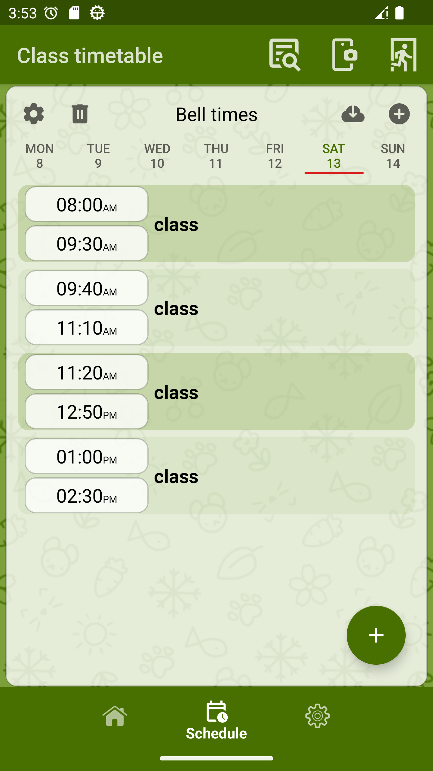 Class timetable (Package Name: com.asmand.callschedule) is developed by Рустам Асмандияров and the latest version of Class Timetable 1.5.0 was updated on March 15, 2026. Class Timetable is in the category of Education. You can check all apps from the developer of Class Timetable. Currently this app is for free. This app can be downloaded on Android 5.0+ on APKFab or Google Play. All APK/XAPK files on APKFab.com are original and 100% safe with fast download.