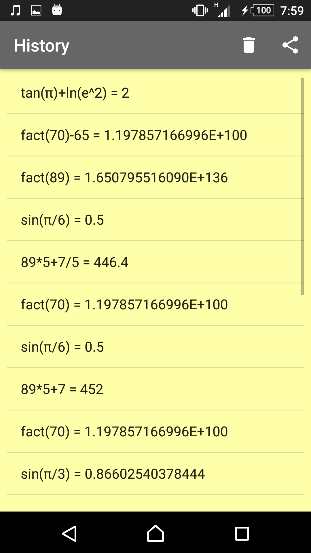 ClassicCalc is an advanced scientific calculator with plot functionality. It has a built in expression parser that allows to evaluate arbitrary well-formed mathematical expressions. ClassicCalc can plot multiple functions on the same graph and users can share plot graph as image or as CSV file. ClassicCalc has advanced history options that allows users to go back to specific calculation or to eliminate it. ClassicCalc is completely free. It is designed for students that want to share mathematical calculations and plots. Feature list: - Memory management - RAD/DEG support - Advanced history - Supported mathematical functions: sin, asin, sinh, cos, acos, cosh, tan, atan, tanh, abs, exp, 1/x, n!, log, ln, ^, sqrt, and all combinations of these, with arbitrary number of parentheses. - Graph with scroll and zoom functionalities - Graph with multiple plots - Graph image share - Graph image can be saved in image gallery - The plot of the functions can be exported as CSV and saved on the external storage or shared with other applications - Decimal separator is automatically selected according to device language - Customized keyboards are provided for an easy and efficient input - 16 digits precision - ClassicCalc is for math fans who just love the classic scientific calculator layouts, like in real scientific calculators