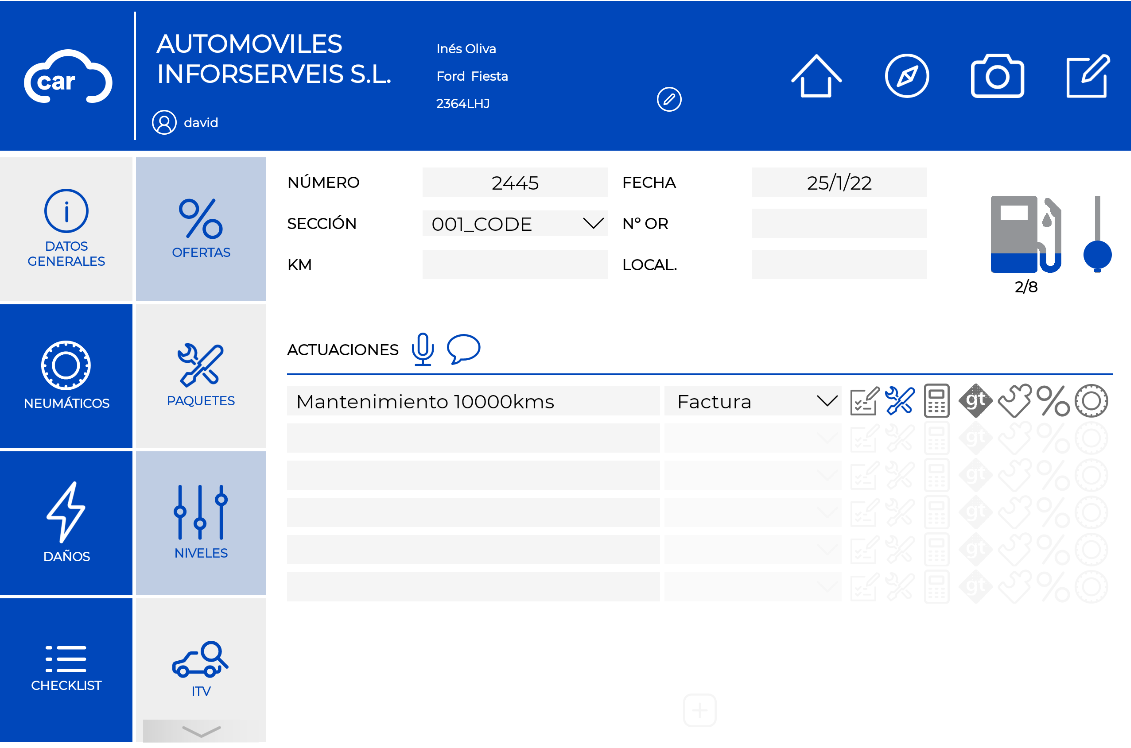 CAR is compatible with all types of vehicles and workshops, automotive groups, car sharing companies, car washes and more. In addition, it can work standalone or through integrations with the systems already operational in each workshop (DMS, ERP, budgeting, accounting,etc.).