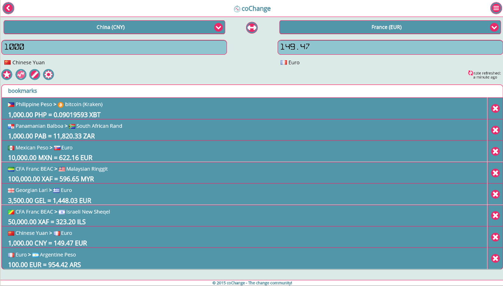 To use coChange abroad and go to a currency exchange office instead of using your bank card is also a way to travel on a more sustainable manner: Your currencies benefit to a local business (often run by a family) and go through the country's economy instead of being transferred to international banking intermediaries.