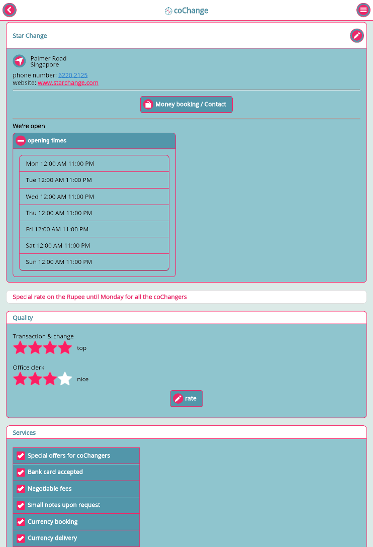 • Offers and exclusive rates at the partners currency exchange offices (undergoing roll out, feel free to ask us for new partnerships and locations).