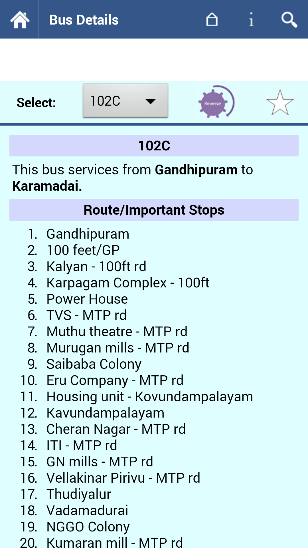Coimbatore Bus Info