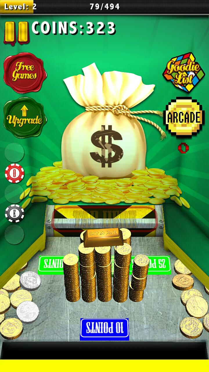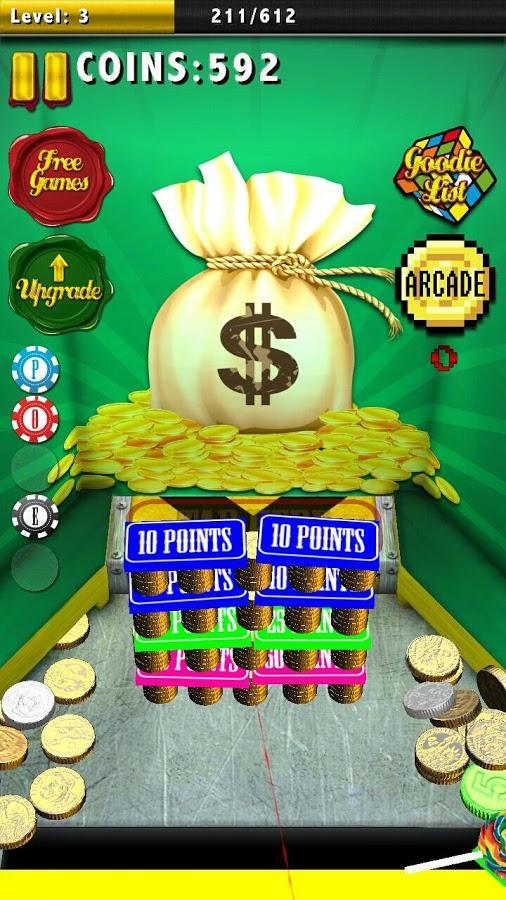 Are you up for a battle unlike any other? This is it! ‘Tapgames’ presents COIN PUSHER GOLD; a truly irresistible coin pusher game that is highly addictive and engaging. Combining elements of fun, strategy, and competition, COIN PUSHER GOLD tops any other available coin dozer game. And you know what? Since you receive unlimited FREE coins, you can play as much and as long as you want without ever getting broke! Escaping from real life has never been more fun and sensible. COIN PUSHER GOLD simulates your favorite carnival and arcade game. Fun sound effects and dazzling 3D physics make sure you really experience that unique atmosphere. The idea is straightforward: While you tap away, coins drop into the machine, and eventually fall of the edge. The more tactical you play, the sooner you level up and beat your competitors! Goodies such as rubix cubes, laser pointers, lollypops, playing cards, dollar packs, and many more will help you experience the thrill of victory. A leader board tracks your achievements and compares them to all other players. Only one of you can become the ultimate COIN PUSHER GOLD champion! Are you up for a challenge? Then stop reading, download this game, and start tapping away! Do you enjoy this game as much as we hope you do? Please, rate and leave a comment. Don’t like it? Please, rate and leave a comment as well. We highly appreciate all input and feedback. If you encounter some bug's or other issues please let me know I don't have all the android phones or tablets that are available "unfortunately". ✓ Cool additional mini arcade games ✓ New extremely fast multithreaded physics engine! ✓ Awesome coin and goodie tower designs after leveling up! ✓ Poker chips now included! ✓ Unlimited FREE coins ✓ Numerous fun goodies ✓ Upgrade from Standard to Super Pusher and drop 30 instead of 10 coins until cool down! ✓ Numerous levels ✓ Dazzling 3D effects and physics ✓ Realistic and fun sound effects ✓ Wish list: YOU determine additional features/future updates of this game! ✓ Regular updates based on your input! ✓ Able to Upgrade to Pro and say “bye, bye!” to those annoying ads! (additional features make it easier to reach high scores and beat the competition)