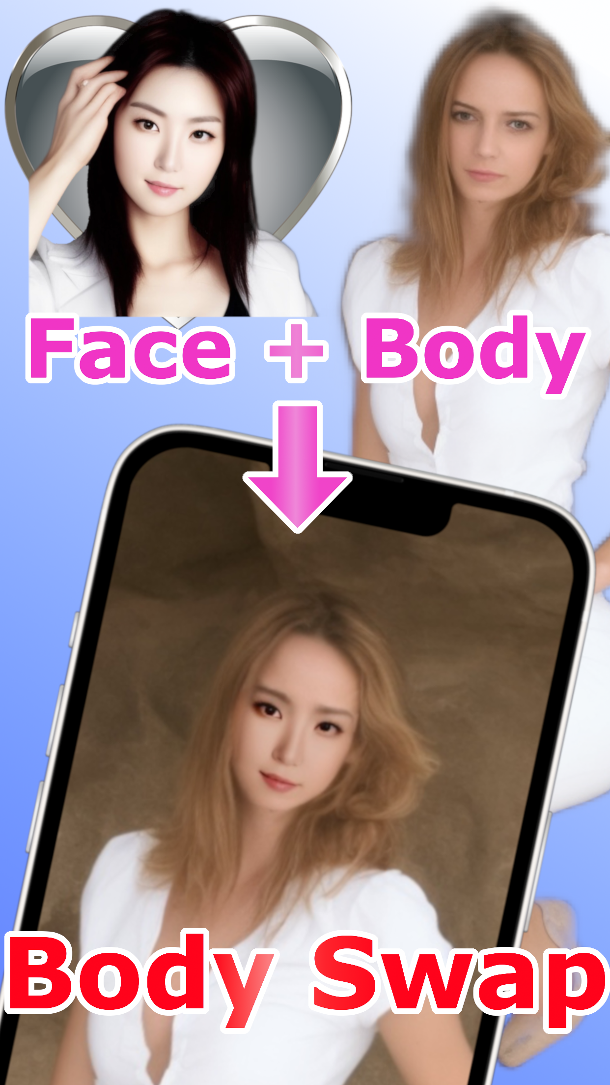 body swap, face swap, body switch, virtual experience, camera app, adventure app, photo editing, virtual exchange, mashup, interactive app, body transformation, virtual reality, AR, avatar, body swap challenge, switch faces, body exchange, body morphing, body transfer, interactive photo booth, replace, face transformation, image manipulation, adult content, nudity, prank app, fake photo, fake image, fake generator, creative app, face recognition, face detection, facial features, face manipulation, AI, deepfake, image editing, idol collage maker, idol photo editor, idol pic collage, idol picture editor, idol montage, celebrity photo editor, K-pop photo editor, J-pop photo editor, idol fan app, idol fan edit, idol fan art, idol wallpaper maker, idol lock screen, idol photo frame.
