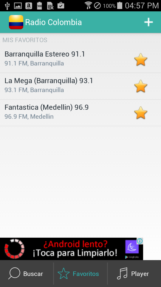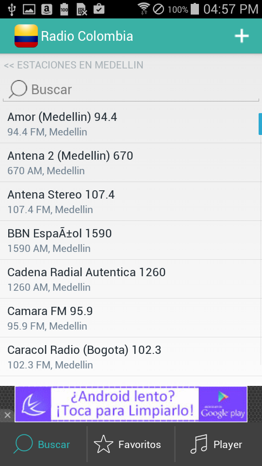 Radio Colombia (Package Name: radios.de.colombia) is developed by Descargalo Gratis and the latest version of Colombia Radio 3.2 was updated on January 8, 2019. Colombia Radio is in the category of Music & Audio. You can check all apps from the developer of Colombia Radio and find 69 alternative apps to Colombia Radio on Android. Currently this app is for free. This app can be downloaded on Android 4.2+ on APKFab or Google Play. All APK/XAPK files on APKFab.com are original and 100% safe with fast download.