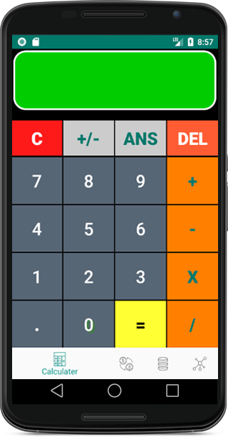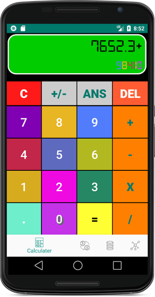 It is colorful and powerful tools you must need! Color Calculator Pro is an sample calculator. Every time you click on any digital button, both text and checked button color will be changed. Answer (ANS) button is specially added, make your calculator more convenience. Currency converter function added for convert most of the all worlds currencies using the live exchange rate from Google. This is the easy currency converter for all currencies that lets you know what to expect when you exchange money. Compare store prices in your own currency at today’s exchange rate to make sure you get a great deal at today’s rate. Supports all currencies for every country including the dollar, euro, pound, yen, yuan, won, franc, ruble, dinar, peso, rupee, shilling, rial, kwacha, dirham, florin, guinea, krona, krone, riyal, colon, som, leu and virtual currencies like Bitcoin ★ Background color can be changed ★ More than hundred color ★ ANS button added ★All world currencies, included Bitcoin. ★Show currency exchange rate directly ★ Live exchange rates updated when entry or by clicked ★ Simple currency converter for single currency pairs ★ Life time historic rate The goal is a simple and uncluttered calculator. Because Calculator is a full replacement for your stock calculator, we recommend you disable the one that came with your phone. If you long press your original calculator, and drag it to App Info, you can Disable it where you'd normally find Uninstall. Find Color Calculator Pro on: https://play.google.com/store/apps/details?id=invencion.colorcalculator