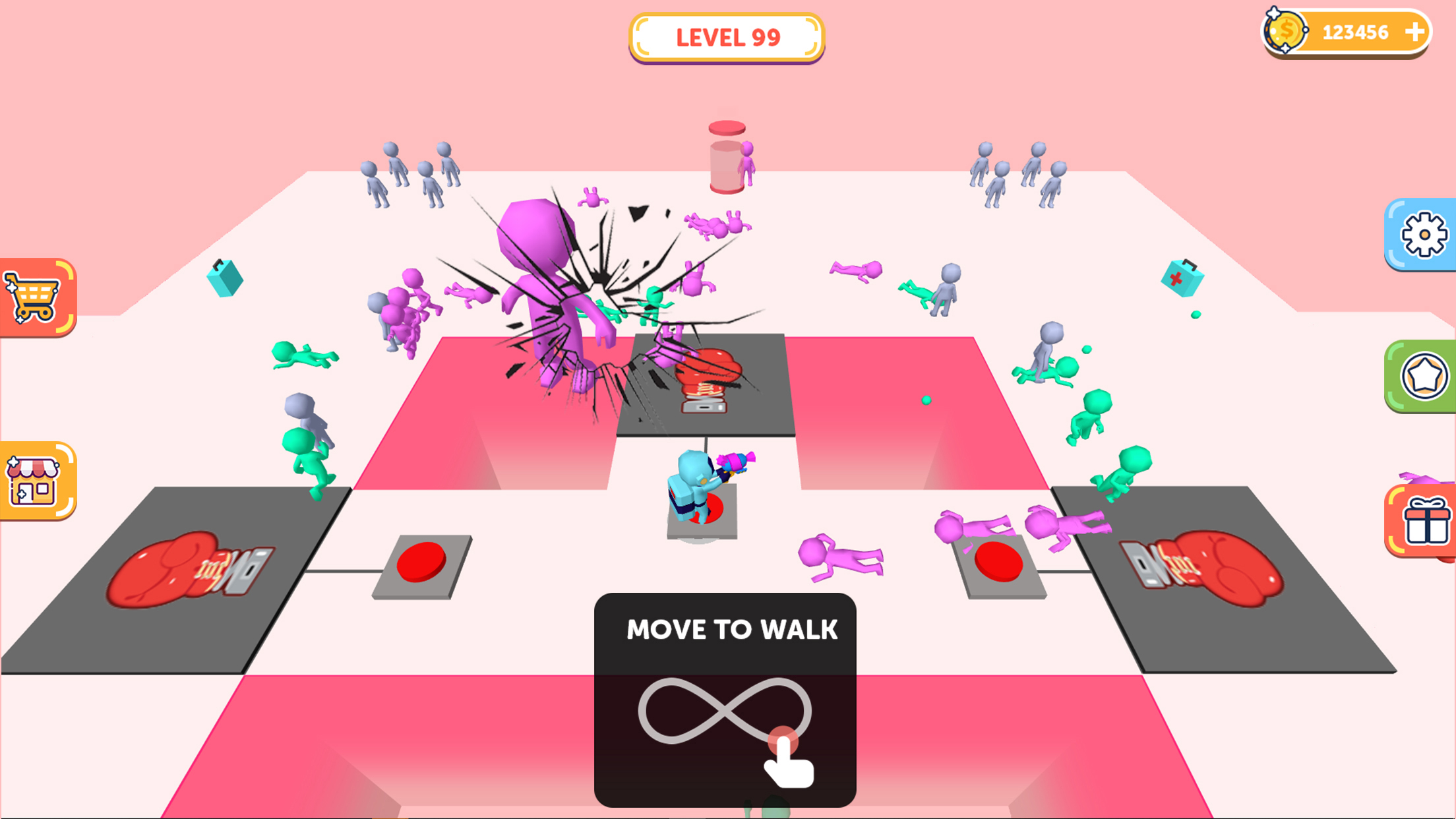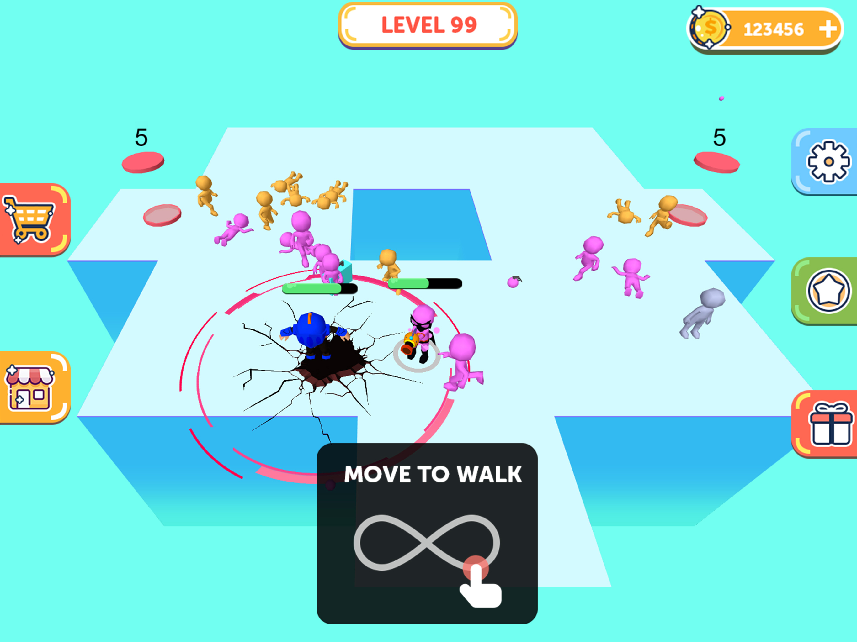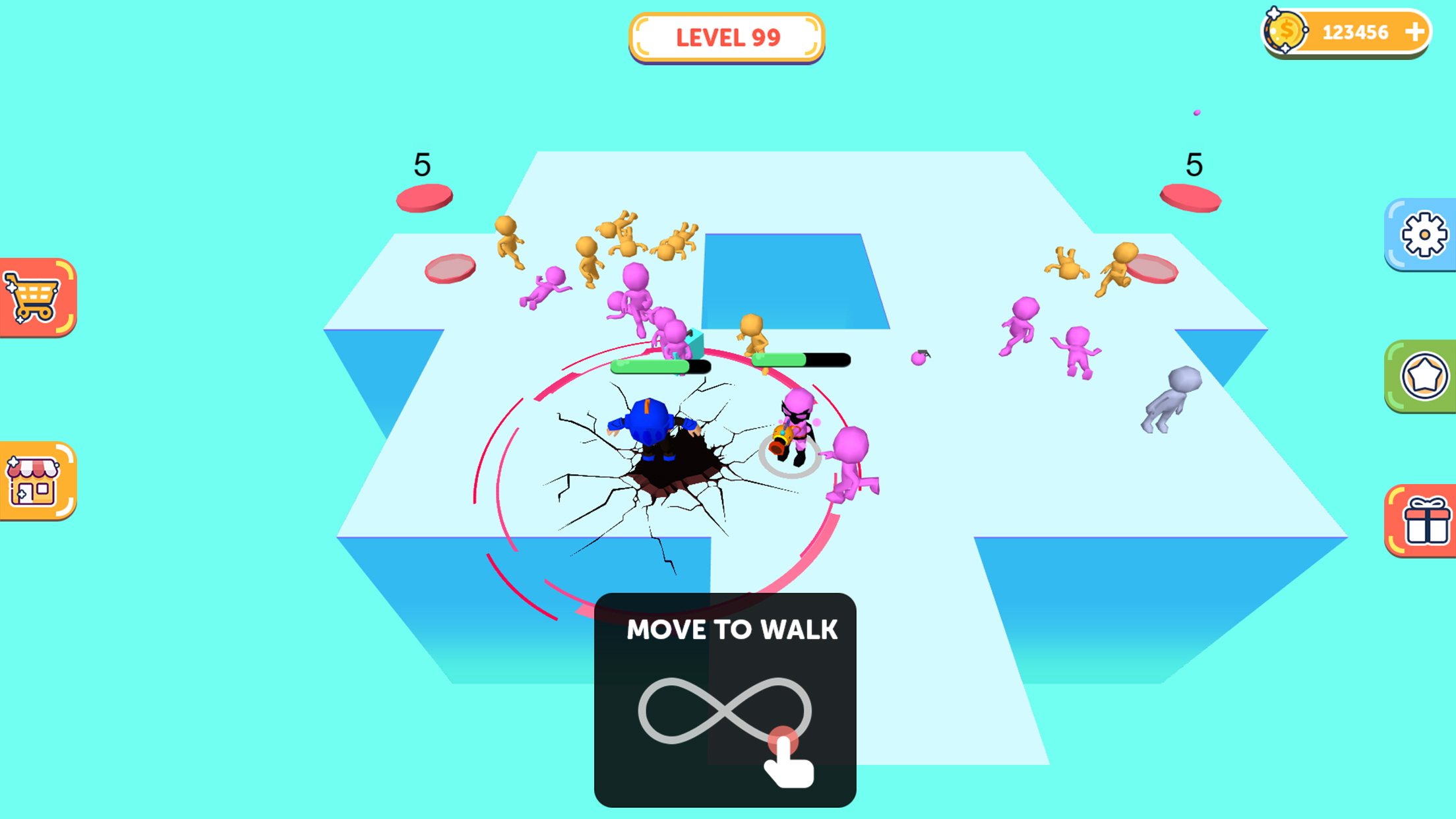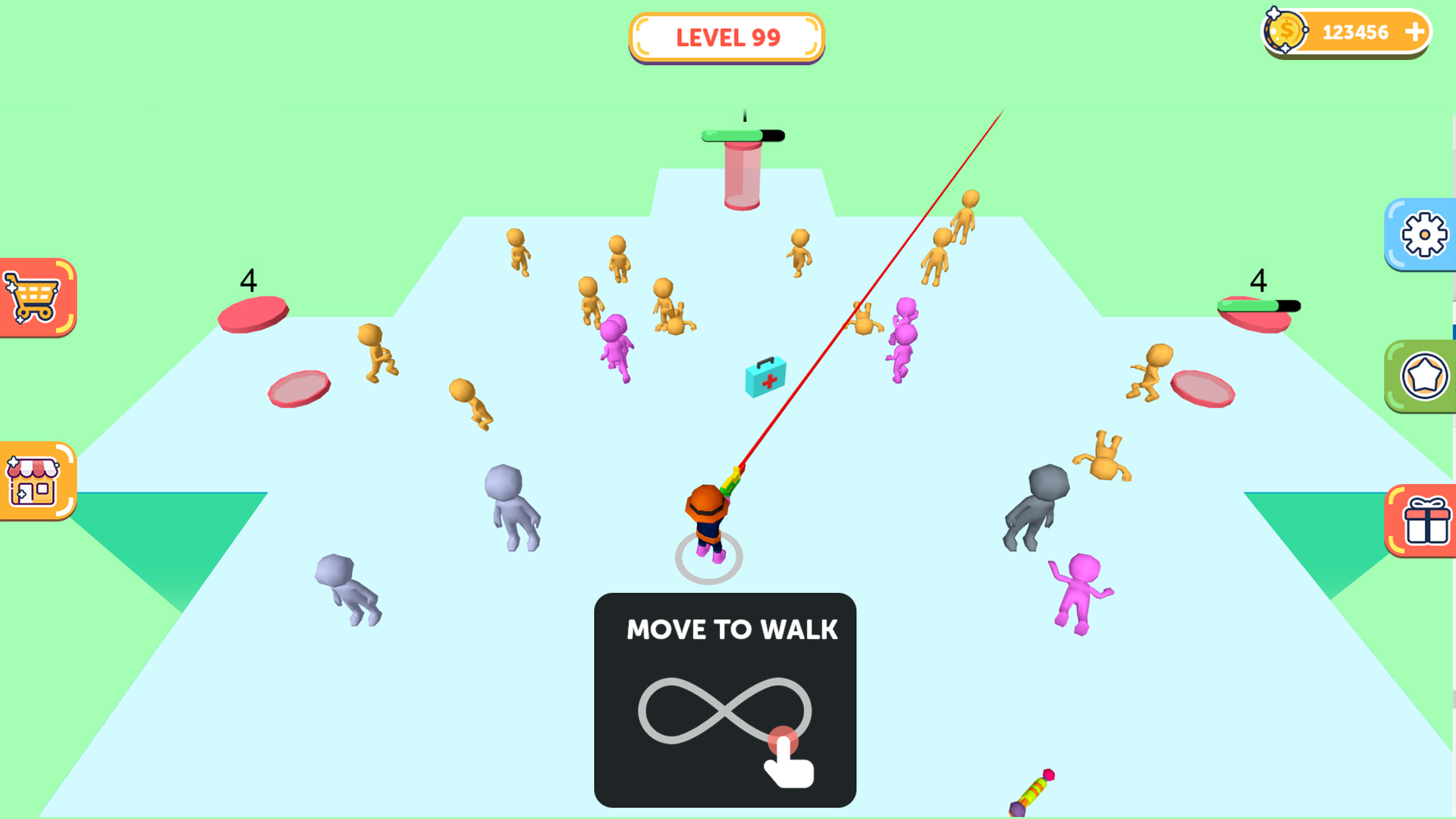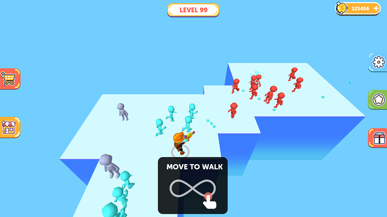 Shoot the neutral characters on the map and turn them into your own men. Let your team take advantage of the number of people, you can easily defeat the enemy Make more use of the props that appear to help you reverse the situation. Meanwhile, don't forget to destroy the lift, stop the enemy's reinforcements. Features -Thrilling scene of multiple players brawl -Let neutral characters join the fight -Unique and ingenious level design