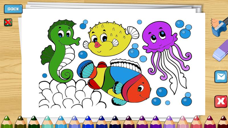 Exotic pictures and tropical sea animals are waiting for kids to be colored. Kids like drawing and coloring games very much and these games develop their imaginations, hand skills, and visual intelligence. Parents can download this Coloring Book Sea Animals for their kids. This app includes two coloring books: Tropical Sea Animals and Sea Life. In Tropical Sea Animals, there are 15 coloring pages on which kids color the pictures of angel fish, clown fish, dolphin, lobster, octopus, oyster, pelican, platypus, puffer-fish, sea lion, sea-turtle, seagull, seahorse, shark, starfish. Sea Life book has 15 pages having more detailed pictures. Plentiful bright colors and coloring pens, crayons,brushes are available to paint the coloring sheets in an amusing way. The size of the coloring pen can be selected. Also, there are three different sized erasers to rub out. Families and preschool kids will love it! Features: - Finger painting to improve child’s hand skills - Coloring pages for both girls and boys - Plentiful brushes and pens - Various colors and tones like pink, yellow, blue, green and their darks and lights - Simple to use, colorful interface - Various pretty tropical sea animals: angel fish, clown fish, dolphin, lobster, octopus, oyster, pelican, platypus, puffer-fish, sea lion, sea-turtle, seagull, seahorse, shark, starfish. - More detailed pictures in the second book - Amusing sounds for kids