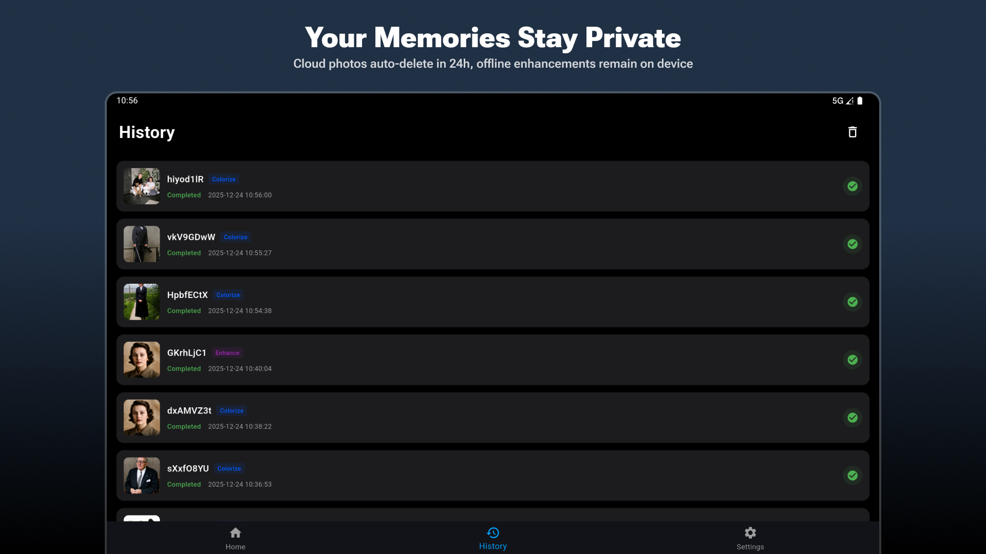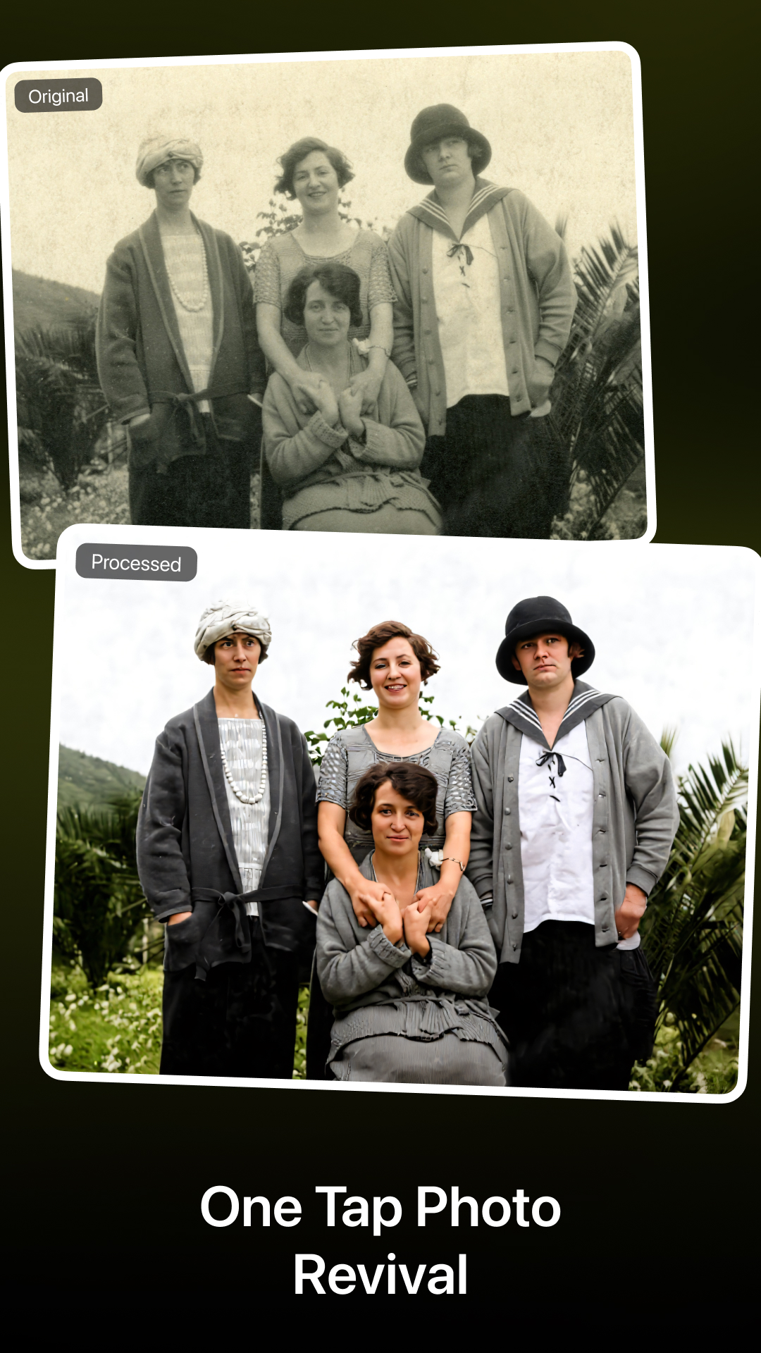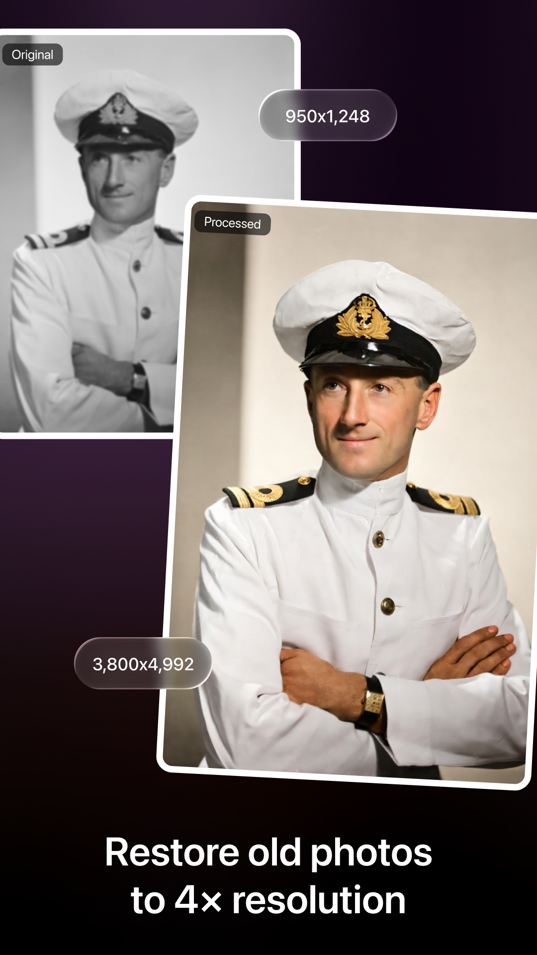 Restore family portraits, repair scratched photos, fix blurry faces, or enhance vintage photos — all in one tap.