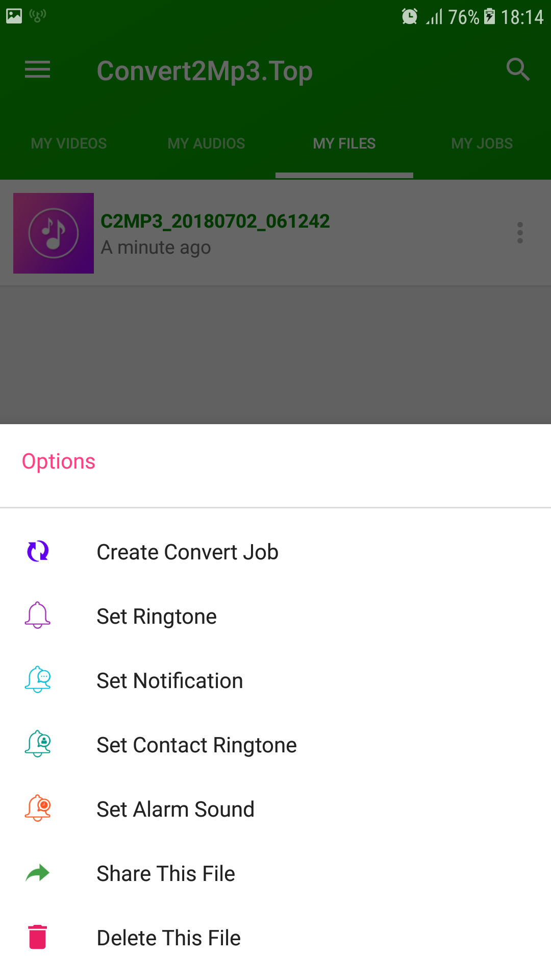 Convert any mp4, video to mp3 with only one touch.