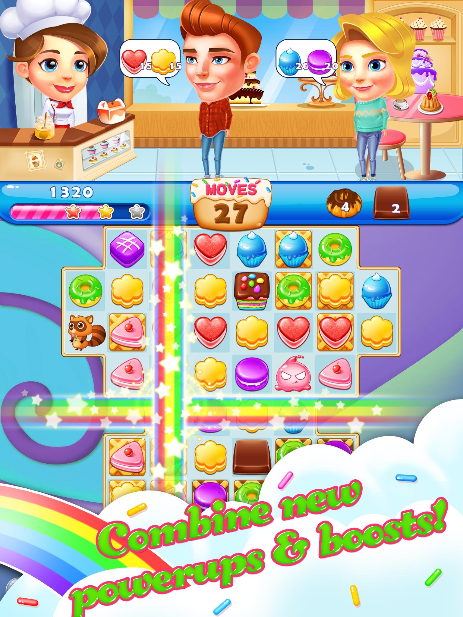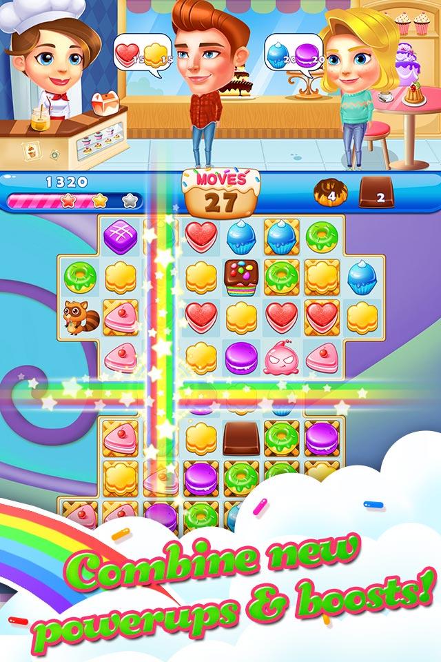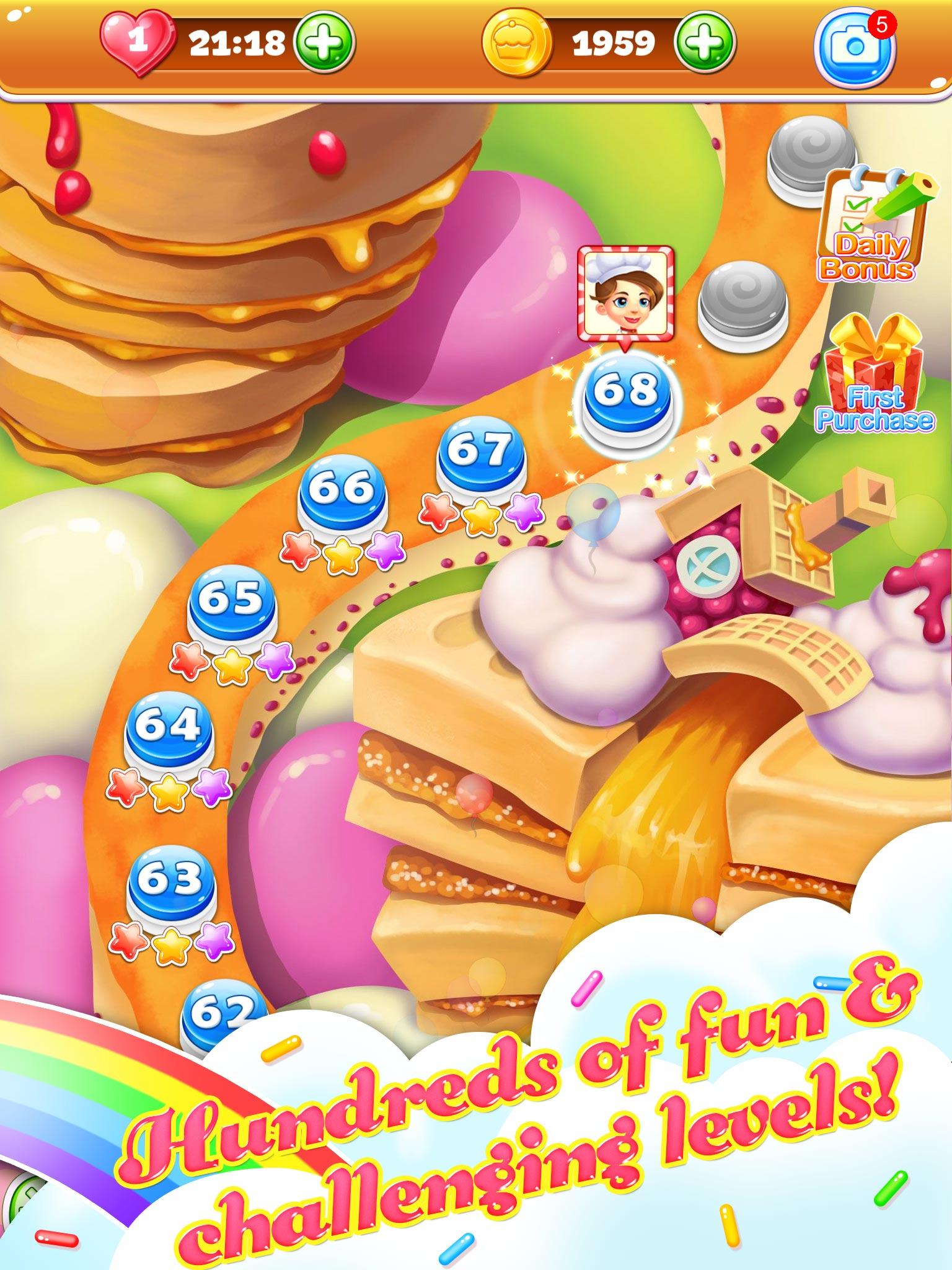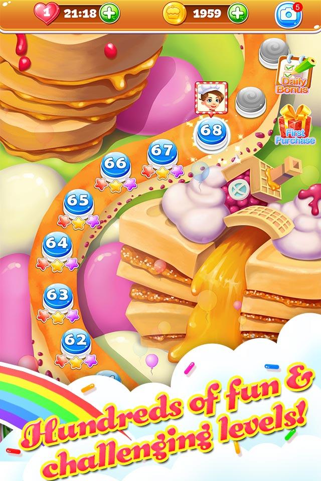 Cookie Fever is a pop funny chef candy cooking game. Switch and crush cookie and splash juice or jam to solve HUNDREDS of cooking levels in this compelling puzzle adventure!! Isn't it the BEST free cookie matching game ever for kids in the world and much more addictive than these jelly cookie or candy star matching games?? You may fall in love to our cooking game "Cookie Fever" and make pops saga or legends of yourself. Use emoji boosts like candy or jelly in these cubes and blast your mind to avoid frozen in any level. Guess how many mania levels you can dash without heads up or cheats! You can play this farm fruit cookie game with your friends, guess who will to be the heroes and get the highest score! Please share your all answers or walkthrough sonic video on facebook or other social media to help other people to play this farm matching game(as many levels as these candy, jelly or cookie crush games)! If you frozen in those candy jelly or cookie splash games, come to Cookie Fever and crush cookie to juice or jam. You will to be heroes and have a fun! - HUNDREDS of funny cookie crush puzzles levels, each one is unique saga! - EASY and FUN to play, but hard to be master! - BOOSTERS HEROES in cubes to help with those challenging levels! - STUNNING music and sound crush splash effects! - BEAUTIFUL backgrounds, COLORFUL and vivid graphics! - Create COOL COMBOS HEROES by matching rare cookie candy or jelly bombs, with unique effects! - FREE updates with new cooking saga puzzles! - Every day you can play this cookie candy matching game and become to the heroes! We will continue working hard to bring you more amazing games! Cookie Fever is completely free to play but some in-game items such as extra moves or lives will require payment.