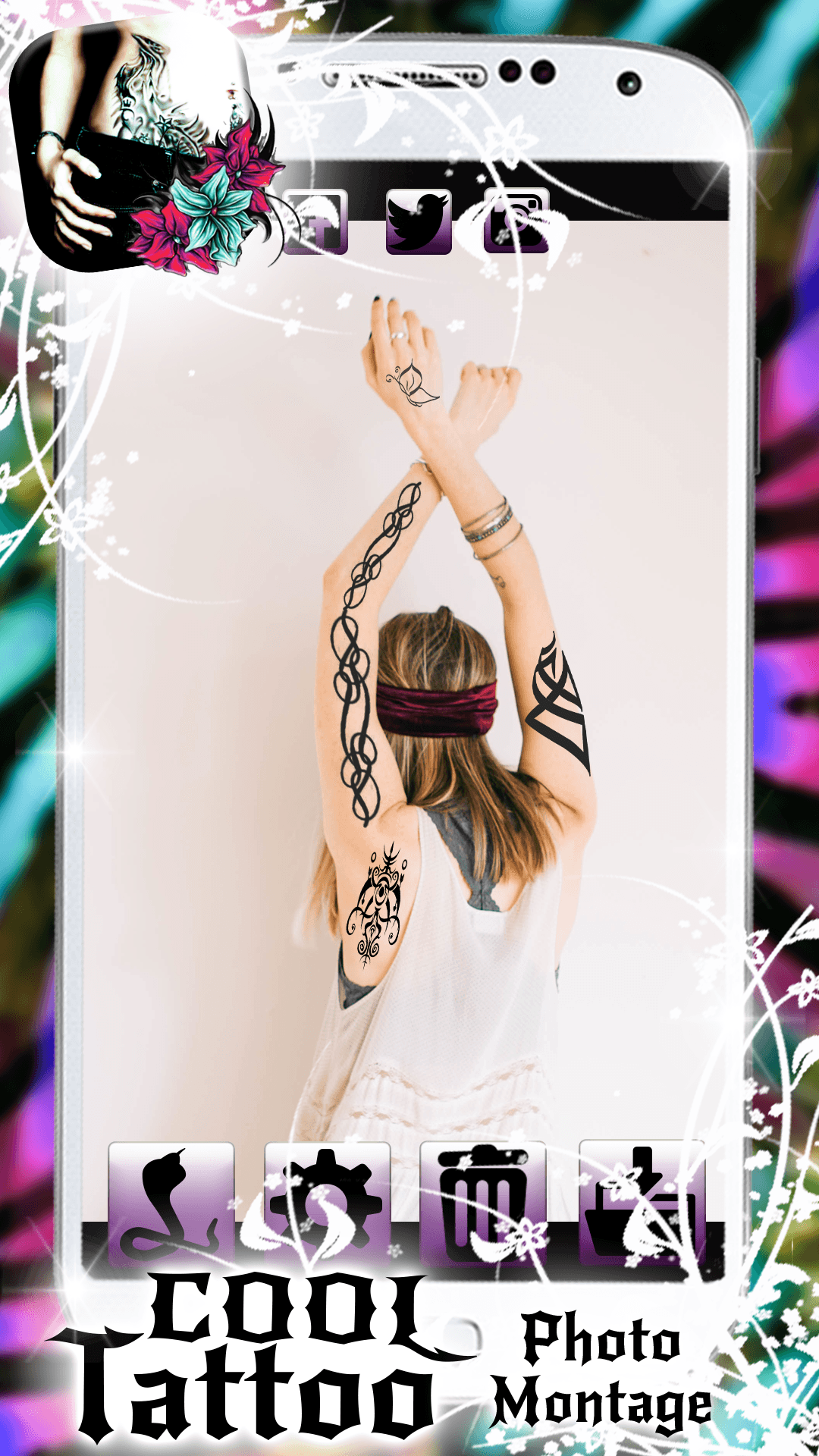 ♦ If you a true tattoo lover, you’ll be amazed by our brand new and trending app on the market for AndroidTM. Try on numerous ‘‘tattoo designs’’ without experience any pain! With ✫Cool Tattoo Photo Montage✫ transform your look completely for free. All you need to do is to upload photo and to pick your favorite tattoo sticker. Browse our catalogue and choose between tribal tattoos, portrait tattoos, Japanese tattoos, heart tattoos, name tattoos and find many other ‘‘cool tattoo’’ stickers. Create an incredible tattoo design of your own pictures or funny drawings. Start your virtual makeover with this astonishing tattoo maker for all boys and girls that are into ink. ♦Best collection of ‘‘tattoo stickers’’ to modify your cute selfies; ♦ Adjust your tattoo sticker by scaling, zooming, rotating, etc; ♦ Choose your favorite ‘‘photo montage’’ design and put your face into tattoo body template; ♦ A wide range of girly tats like lotus flower tattoo, tinkerbell tattoo, angel tattoo, feather tattoo, etc; ♦ Pick the body part that you want to ink, and add bunch of cool tattoo designs; ♦ Add lower back tattoo, wrist tattoo, ankle tattoo, face tattoo, neck tattoo, full sleeve tattoo, etc; ♦ Various tattoo styles to suit your taste and personality; ♦ Add glitter tattoos, watercolor tattoos, or retro tats to modify your pictures; ♦ A variety of colorful tattoo ideas, tattoo patterns and awesome tat designs; ♦ Best collection of famous celebrity tattoos to choose from; ♦ Sharing options on Facebook, Instagram or Twitter; ♦ Have you ever wanted to see what would you look with inked body? ✫Cool Tattoo Photo Montage✫ is an awesome application that allows you to make your own photo montages by applying great and crazy tattoo designs on your photo. Plenty of amazing tattoo ideas are ready to be used! Pick unique and original tattoo style and place cool sticker wherever you want. This stunning ‘‘photo montage maker’’ will transform your regular pics into awesome and trendy photo designs. Deciding on a real tattoo is a big decision! To avoid tattoo fails, explore our numerous temporary tattoo options. Apply cool photo effects and special filters to embellish your tattoo image. This amazing collection offers you best tattoo designs in different colors, sizes and shapes. ♦ There’s no better way to have your own tattoo studio than to download ✫Cool Tattoo Photo Montage✫ for free! Endless number of pictures of tattoos to create personalized photo montages. No matter if you are a boy or a girls, this cool picture editor offers you a lot of stunning tattoo stickers for pictures like red rose, tiger, tribal, unicorn, phoenix, feather, kitty and much more. Take a selfie with our sticker camera and instantly add the most wanted ‘‘tattoo ink’’. Free collection of wonderful tattoo designs for your cute pics are all packed in this tattoo studio app. With this photo manipulation program you get to choose how would you look! Cover your body completely with loads of interesting tattoos and make yourself unrecognizable. Share your after and before photo on social media, and impress everyone. ♦ Look badass with a help of ✫Cool Tattoo Photo Montage✫! This is an awesome opportunity to try out great collection of realistic temporary tattoos and to become a pro in fun photo editing. Get an incredible tattoo makeover by using customizable features and editing tools. Now you can have your own virtual tattoo studio where you can try out loads of ‘‘tattoo photo’’ designs and find the best for you. Become the most popular person on the social network by using this incredible tattoo sticker maker. Spread the word that the best photo editing software has arrived on the app market! *Android™ is a trademark of Google Inc.