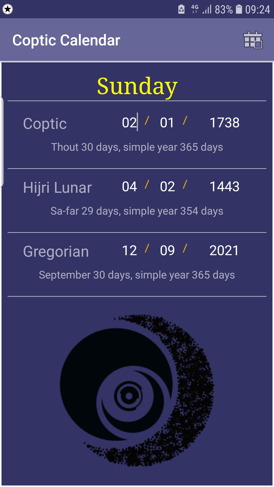 Coptic Calendar (Package Name: com.abuhadi.copticcal) is developed by AbuHadi and the latest version of Coptic Calendar 1.0.39 was updated on January 1, 2026. Coptic Calendar is in the category of Tools. You can check all apps from the developer of Coptic Calendar. Currently this app is for free. This app can be downloaded on Android 6.0+ on APKFab or Google Play. All APK/XAPK files on APKFab.com are original and 100% safe with fast download.