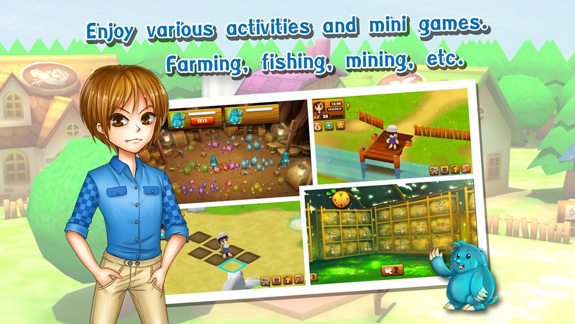 There are a lot of things to do in Harvest Day. Relaxing does not mean boring. Set yourself free in Country Life, spend your time on farming, mining, fishing and other activities you might never imagine