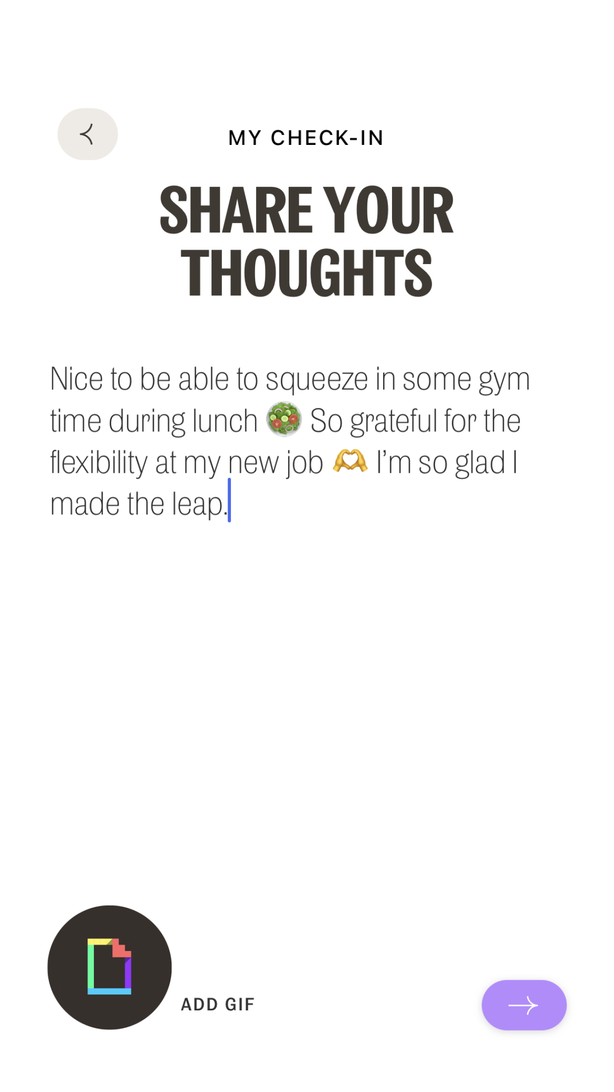 A daily tracker where you easily share your day with your partner in 3 minutes. That way, you always have time to tend to your relationship, even on the most stressful days.
