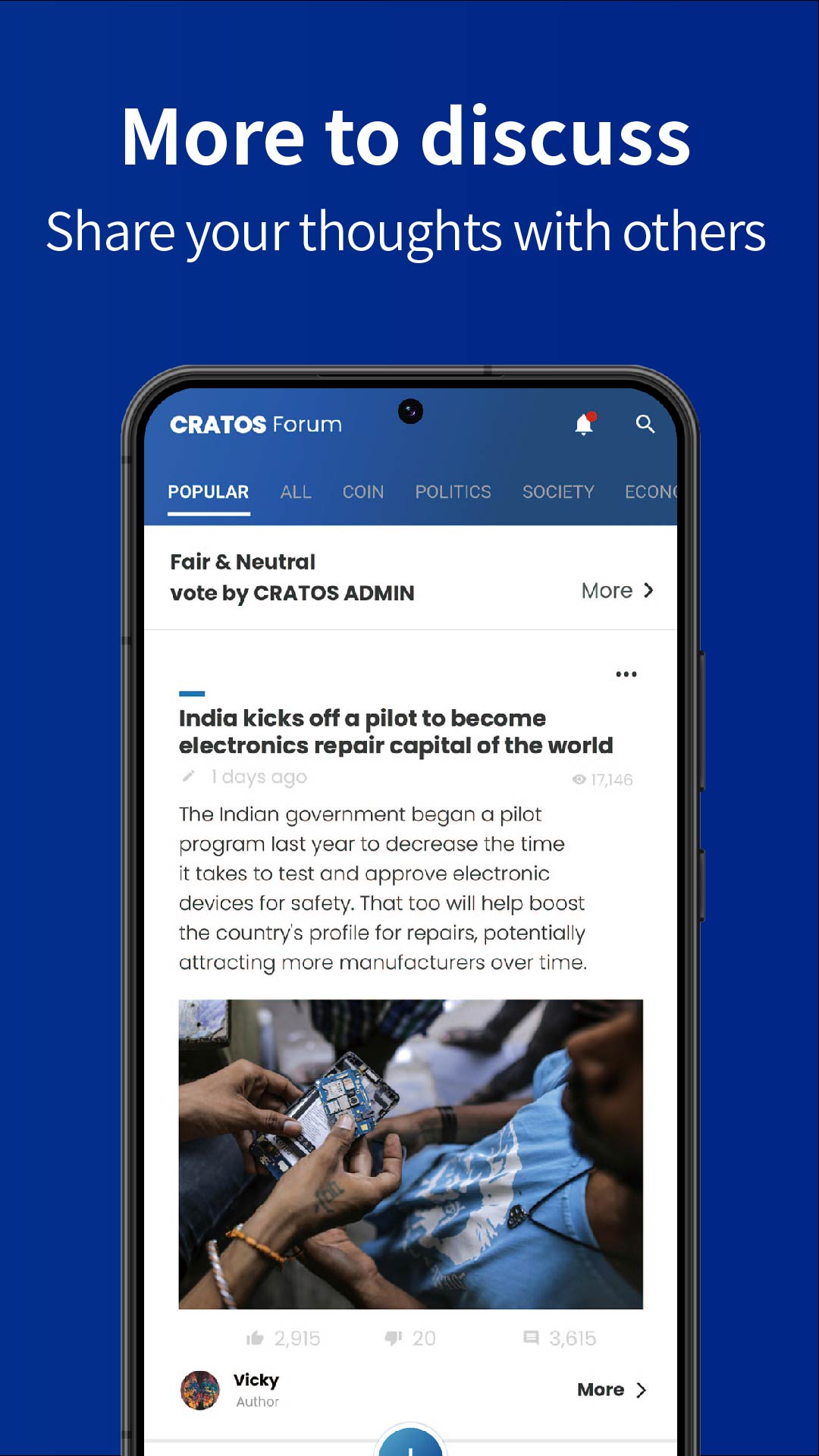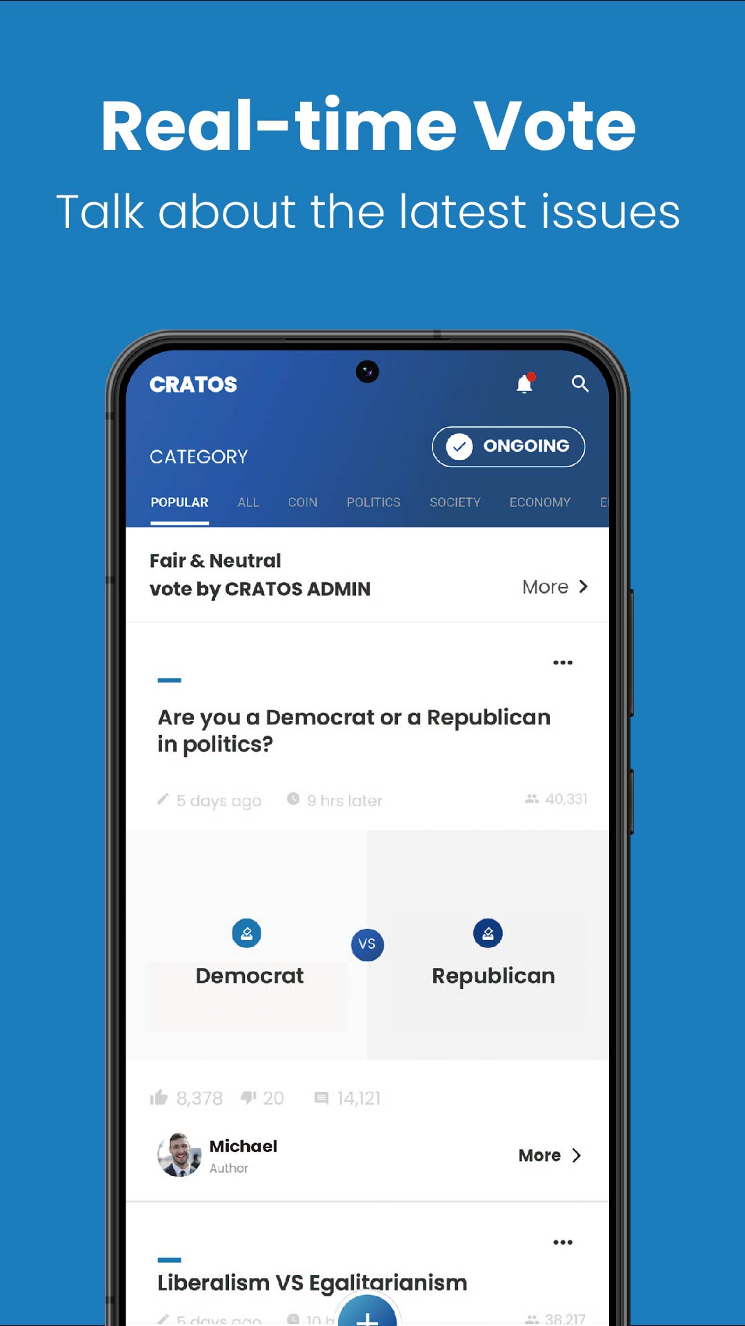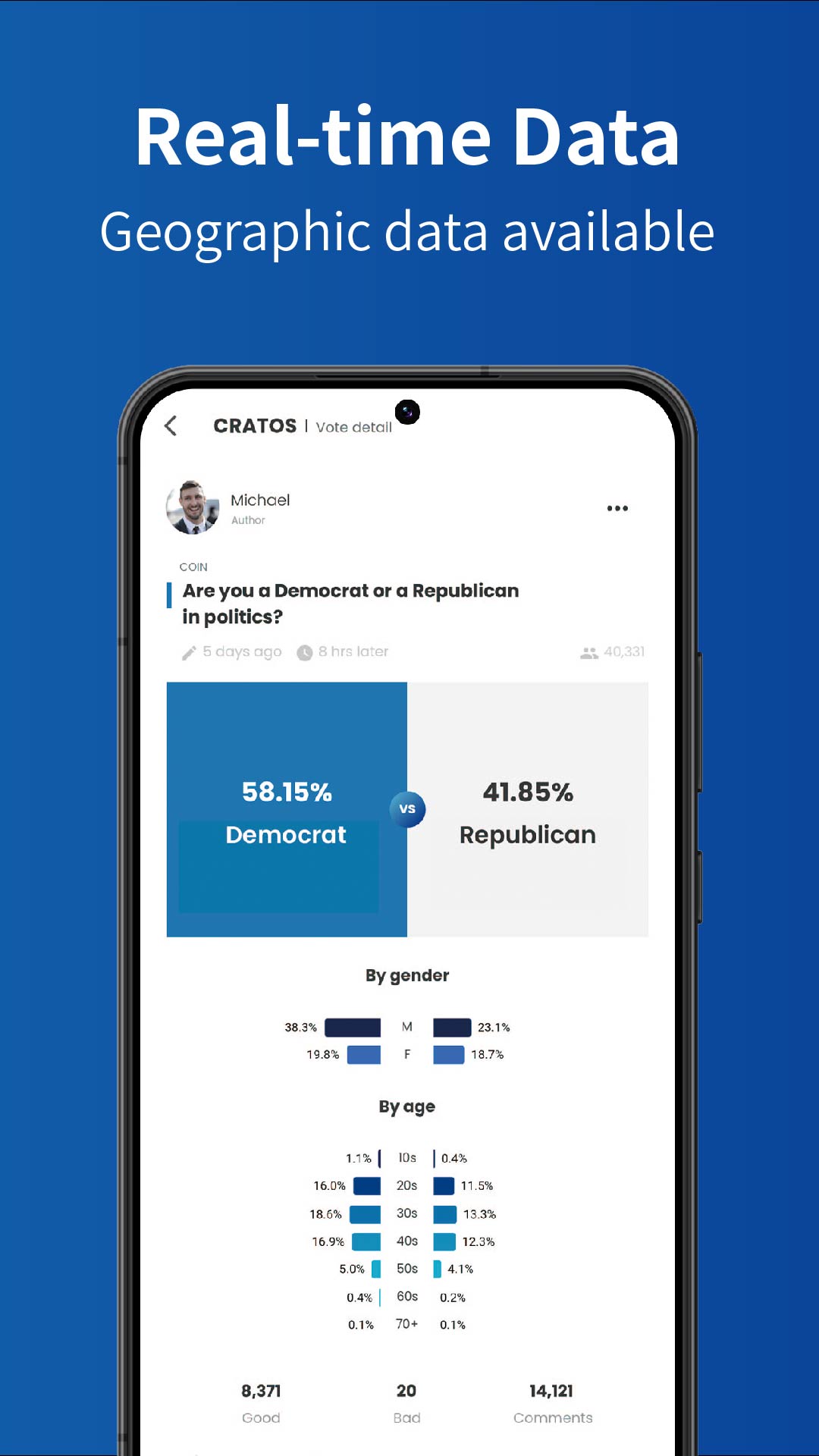 Cratos has been built for providing transparent and more accurate data of public opinion. The more citizens vote for their opinion, the more accurate data to provide.