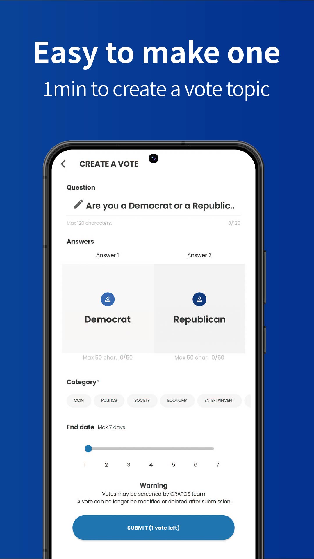 Easy to vote & have fun: Simple UI and 2 clicks to vote for your opinion