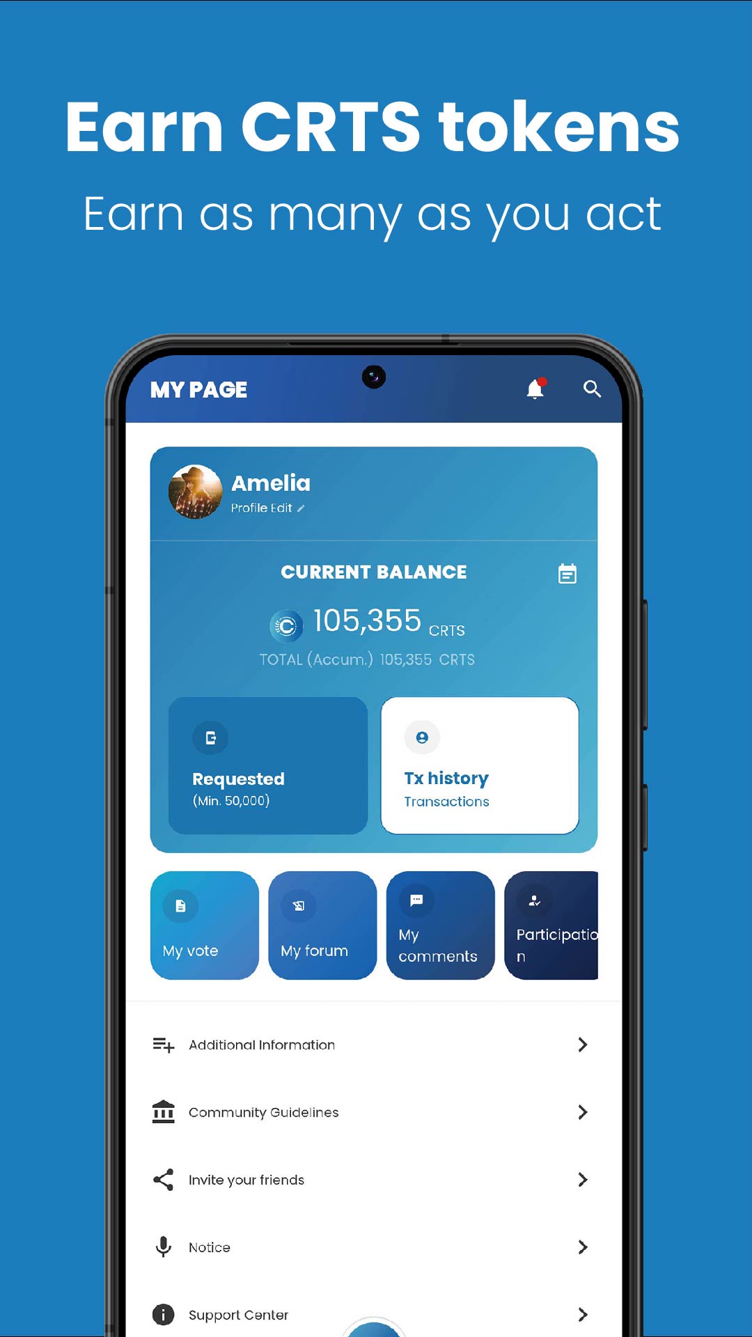 In addition, you can earn CRTS tokens as many as you act to contribute to our communities.