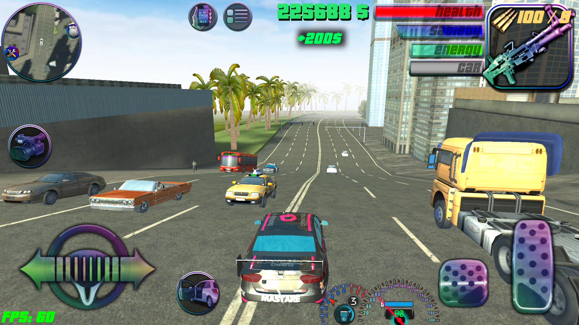 Crazy Miami Online is a great open-world multiplayer game. At your disposal are 3 huge cities, a large selection of vehicles (cars, motorcycles, bicycles, helicopters, boats, military equipment, etc.). The game has a large selection of works, such as a taxi driver, policeman, military, loader, medic, cleaner, driver, etc. You can join one of 5 gangs and earn money. The weapons store has many types of weapons, from pistols to grenade launchers. You can buy houses and apartments. The city has many establishments, namely a bank, a prison, 3 police stations, a car shop, an arms store, a yacht club, a hospital, a taxi park, a supermarket, gas stations, a military base and much more. And all this is supported by the multiplayer mode where you can play with friends.