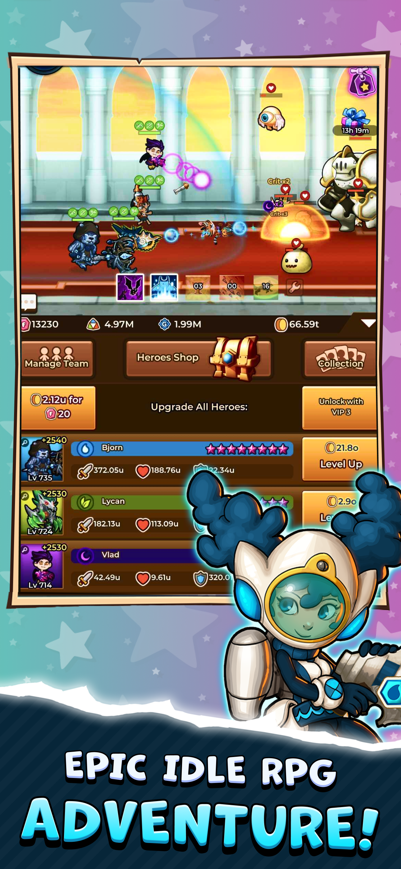 Crush Them All (Package Name: com.godzilab.idlerpg) is developed by Imperia Online JSC and the latest version of Crush Them All - PVP Idle RPG 2.0.800 was updated on December 28, 2025. Crush Them All - PVP Idle RPG is in the category of Role Playing. You can check all apps from the developer of Crush Them All - PVP Idle RPG and find 200 alternative apps to Crush Them All - PVP Idle RPG on Android. Currently this app is for free. This app can be downloaded on Android 6.0+ on APKFab or Google Play. All APK/XAPK files on APKFab.com are original and 100% safe with fast download.