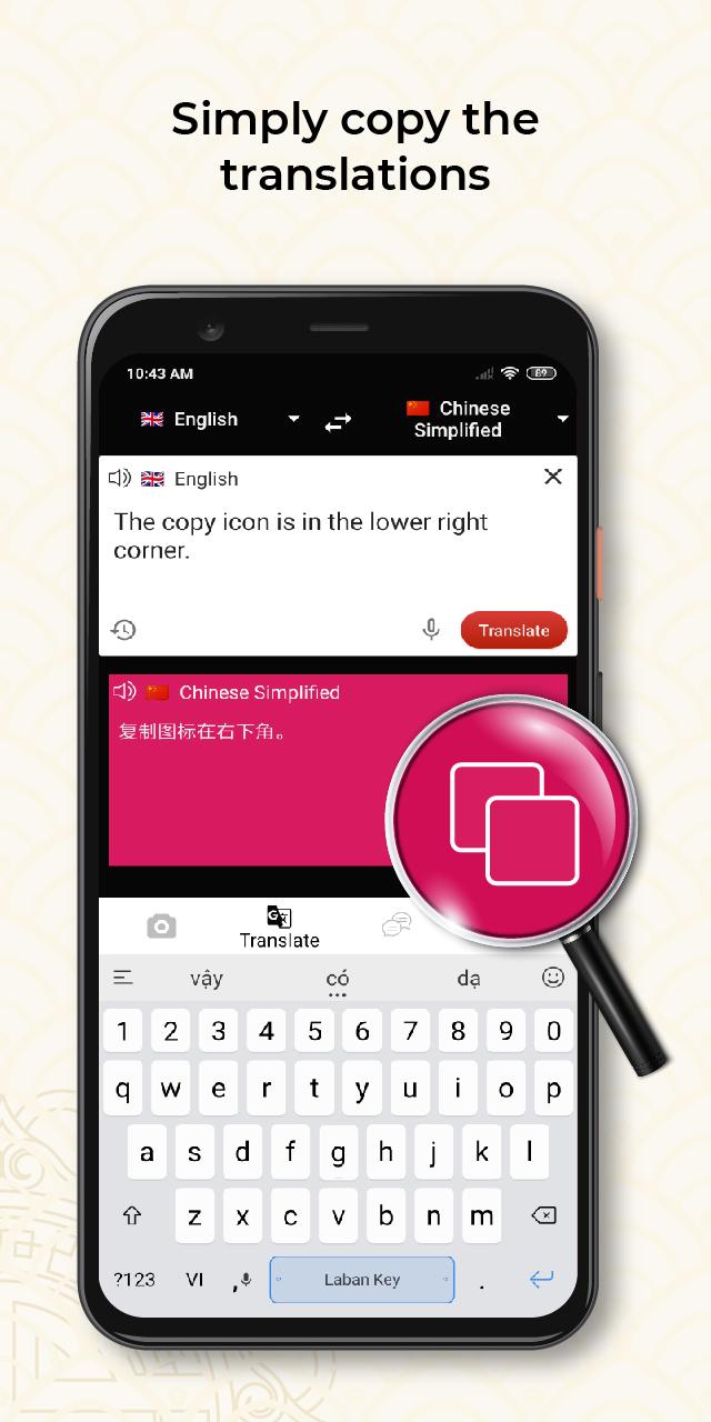 - Quick reversal, easy copy Chinese to English translation.