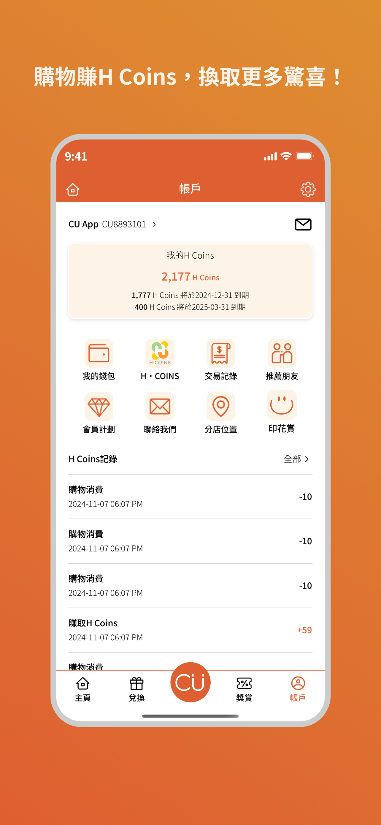 CU APP newly upgraded to enjoy unlimited possibilities To enjoy exclusive offers, download the CU APP now! We are excited to introduce the latest features of the new CU APP: - Member registration: Easily create an account and enjoy membership benefits! - Link to H COINS: Automatically link CU APP members with H·COINS, allowing members to enjoy exclusive H·COINS benefits at the same time. - Redeem your points for favorite rewards faster: H Coins earned can be redeemed for electronic gift certificates, popular hot-selling products and selected offers provided by merchants in the CU APP and H‧COINS apps. - New interface and easy operation: The new version of CU APP interface has been fully upgraded, making it easier for members to check their points and learn about the latest promotions. Enjoy the wonderful benefits CU APP has prepared for you. Download the mobile app to get more discount information!