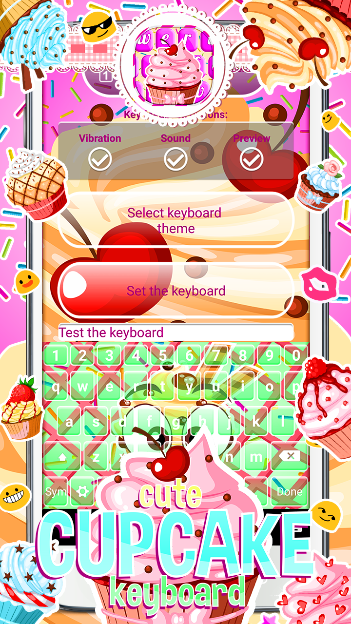 ❤ Get ready for tiny delicious desserts ✿Cute Cupcake Keyboard✿ and change your keyboard style using these beautiful pink cupcake images! Welcome to our candy shop! The latest special offer is the “best keyboard app” for Android™ with colorful cupcakes themes that are too cute to eat, but are cute enough to decorate your keyboard background! Satisfy your sweet tooth mania with pink candy keyboard themes that you can find in our chocolate desserts image gallery! Experience cuteness overload thanks to “pink keyboard” themes for your smartphone with the most delicious sweets: cupcakes, muffins, whipped cream, cotton candies, cherries, ice cream, lollipops and many more. Change keyboard layout in a matter of seconds using our sweet candy “themes for keyboard” and enjoy exchanging sweet text messages with friends or family. Tons of super kawaii emoticons, cute emoji and happy smiley faces await you inside this “virtual keyboard” free Android themes app! Download these “cute keyboard” themes for girls and set delicious chocolate cupcake keyboard skins! Don’t miss the chance to customize your keyboard with the new “emoji keyboard” and sweet cupcakes themes! Free cute fonts, girly fonts and many other cute candy girl pink keyboard designs can be yours once you set these beautiful cupcakes keyboard covers! Follow these 3 easy steps to set cute pink girly keyboard themes: ❤ Click on ‘Enable the Keyboard’, check the box-field next to ✿Cute Cupcake Keyboard✿ and then click on the OK button; ❤ Return to the application, select ‘Set the Keyboard to Default’ button and select ✿Cute Cupcake Keyboard✿; ❤ You can now customize your keyboard (choose themes, languages and shortcuts). ♥♥♥♥♥♥♥♥♥♥♥♥♥♥♥ ❤ Find your favorite cute girly “cupcake decorations” for your custom keyboard! ❤ Browse through our gallery and choose the desired chocolate cookie cupcakes photos for your touch keypad! ❤ Choose from a huge collection of sweet candy, lollipops, chocolate cakes, delicious chocolate muffins, ice cream, whipped cream, cherries on top or cookies images to set as keypad themes! ❤ Cute emoji keyboard and girly text emoticons! ❤ Select the desired language and start typing on a French, Spanish or German keyboard! ❤Change keyboard letters styles with free cute fonts and girly fonts. ❤ Options to turn on and off keypad sounds and vibration! ♥♥♥♥♥♥♥♥♥♥♥♥♥♥♥ ❤ Create your own custom keyboard right away with sweet girly pink cupcake themes that we have specially designed for all sweet dessert fans around the world! If you enjoy eating mouthwatering cakes, this is the cutest girly keyboard theme for your smartphone or tablet! Easily switch between your favorite pink cupcake wallpaper backgrounds and set a different cute cupcake decoration theme each day! Apply delicious cupcakes themes with cute buttons made of sweet cupcake toppers using the best “keyboard changer” app! Enjoy these cute keyboard decorations like you enjoy eating cupcakes thanks to ✿Cute Cupcake Keyboard✿! ❤ If you are mad about sweets, please take a look at our amazing yummy cupcake decorations, chocolate sprinkles, vanilla ice creams and many other delicious dessert themes for your smartphone keypad! This free keypad app comes with awesome chocolate cupcake background images which make you want to eat the sweet dark chocolate treats every time you type on your keypad. Install this cute pink keyboard color changer with pink cupcake decorations right away! ❤ Check out adorable emojis and emoticons we have prepared for you in these free cute girly themes with sweet cupcakes, lollipops and chocolate cakes! Feel the candy rush every time you type a message and download ✿Cute Cupcake Keyboard✿ free of charge! If you love sweets, cakes and other tasty things, our cute cupcake keypad themes app is the perfect choice for you! Don’t miss out! *Android™ is a trademark of Google Inc.
