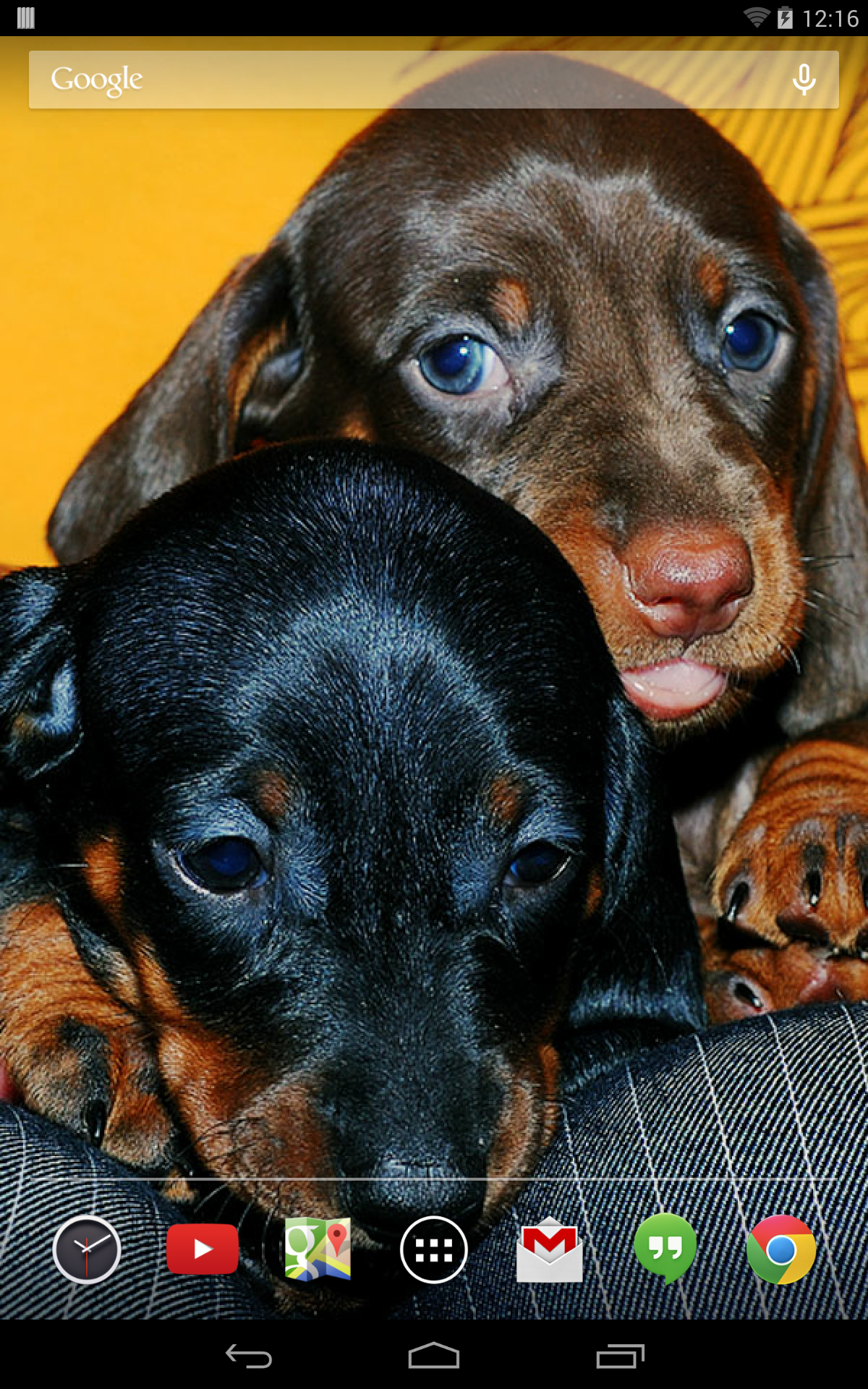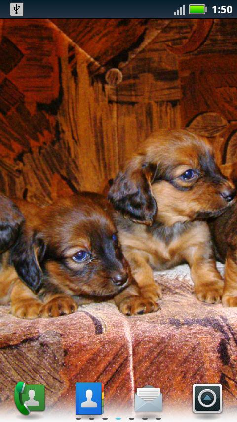 The dachshund is a short-legged, long-bodied dog breed belonging to the hound family. The standard size dachshund was bred to scent, chase, and flush out badgers and other burrow-dwelling animals, while the miniature dachshund was developed to hunt smaller prey such as rabbits. In the American West they have also been used to hunt prairie dogs. Dachshunds come in three sizes: standard, miniature, and kaninchen (German for "rabbit"). Although the standard and miniature sizes are recognized almost universally, the rabbit size is not recognized by clubs in the United States and the United Kingdom, but is recognized by all of the clubs within the Fédération Cynologique Internationale (World Canine Federation) (FCI), which contain kennel clubs from 83 countries all over the world. An increasingly common size for family pets falls between the miniature and the standard size, frequently referred to as "tweenies." A full-grown standard dachshund averages 16 lb (7.3 kg) to 28 lb (13 kg), while the miniature variety normally weighs less than 12 lb (5.4 kg). The kaninchen weighs 8 lb (3.6 kg) to 11 lb (5.0 kg). According to kennel club standards, the miniature (and kaninchen, where recognized) differs from the full-size only by size and weight, thus offspring from miniature parents must never weigh more than the miniature standard to be considered a miniature as well. While many kennel club size divisions use weight for classification, such as the American Kennel Club, other kennel club standards determine the difference between the miniature and standard by chest circumference; some kennel clubs, such as in Germany, even measure chest circumference in addition to height and weight. If you’re not sure what live wallpapers are, they’re a type of application that works on a mobile device using the Android operating system (like your device!). The application works as a wallpaper – providing the background image for the home screen—but also works as a conventional application since it can provide user-interaction with the touch screen (allowing the image to change dynamically, for example) and access other hardware and software features within the device (accelerometer, GPS, network access, etc.). **Multiple backgrounds!** Switch up the background as often or as little as you like with user-configurable options. **Power saving features!** This app uses much less power than typical live wallpapers. It will take a bit more power to operate than a normal wallpaper, but much, much less battery power than the average live wallpaper. **Super easy to use!** Upon install the app will bring up the options menu and then immediately let you set the wallpaper. No hassle and easy to use! **Translated to 35 languages!** Do you really, really want to learn Russian? We didn’t think so, but it’s available just in case, in any language your phone can display! Please note that live wallpapers can’t be set automatically. We’ll bring you to the setup screen where you’ll select the live wallpaper. We’d love to do it automatically but Android doesn’t allow it. Select text from Wikipedia, which does not endorse this product. Licensed under the creative commons (creativecommons.org/licenses/by/3.0/). Text at en.wikipedia.org/wiki/Live_Wallpaper and wikipedia.org/wiki/ Dachshunds.
